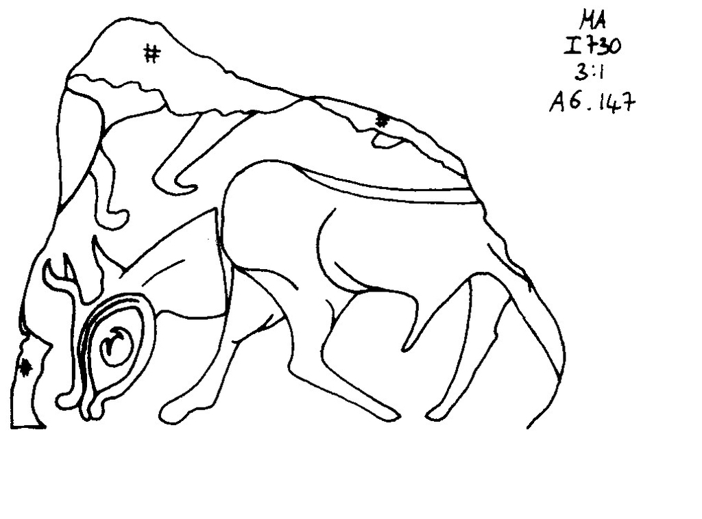 | Notes on style | 2005-08-00 | mKB | this bull walking is similar to the one in i103 but in this case does not have the two human figures associated with it. [Input: ZI827mKB.j] |
