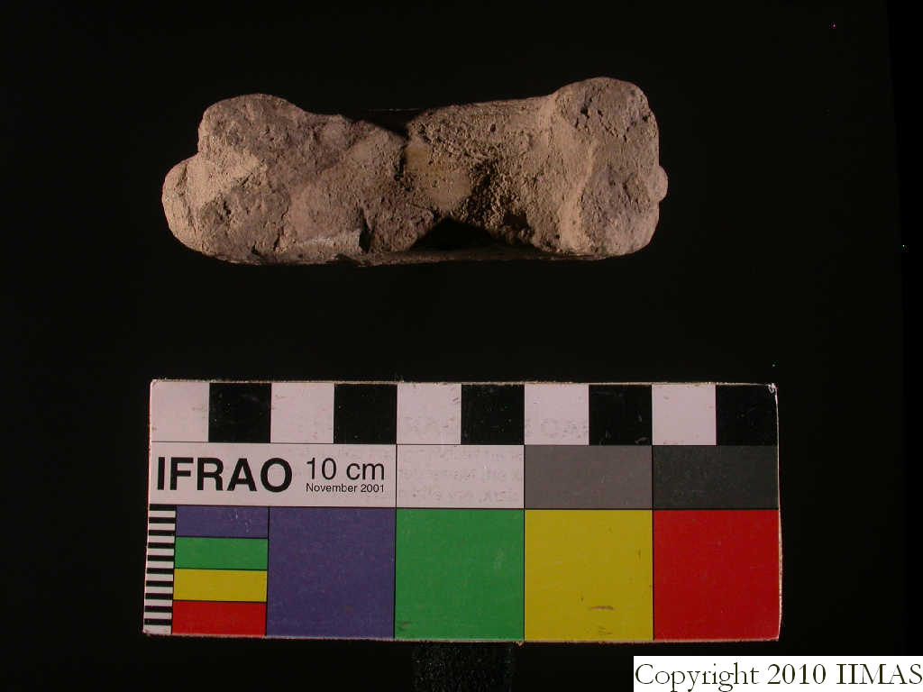 | Description (summary) | 2001-06-26 | rAH | CANIS torso, part of a zoomorphic vessel or plaque; one side is flat. The tail is turned up. Leg body join is carnivore. [Input: N206RAH.j] |
