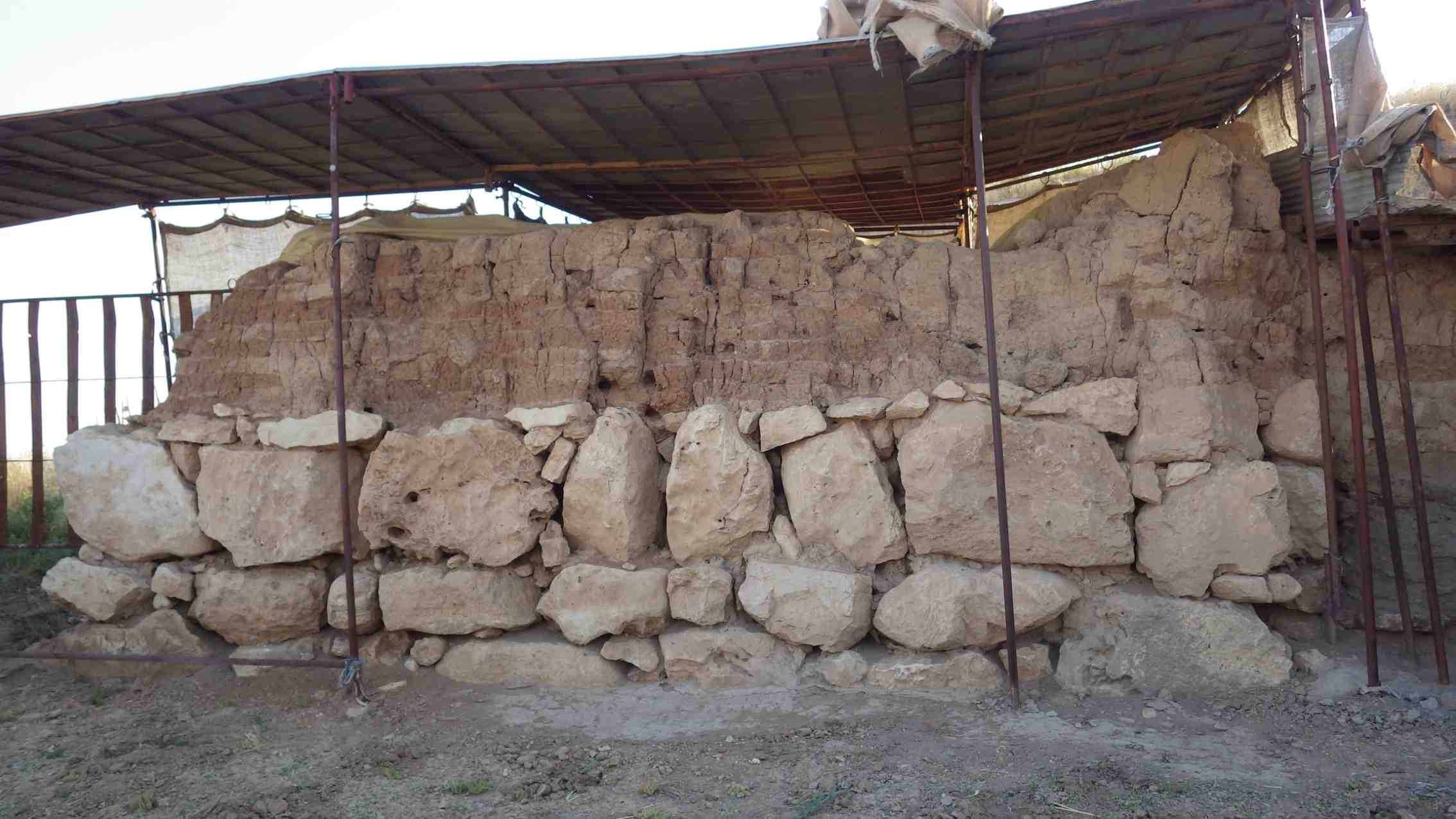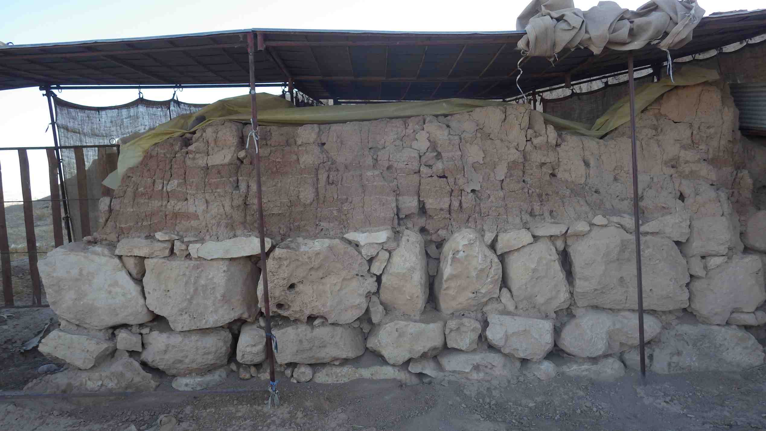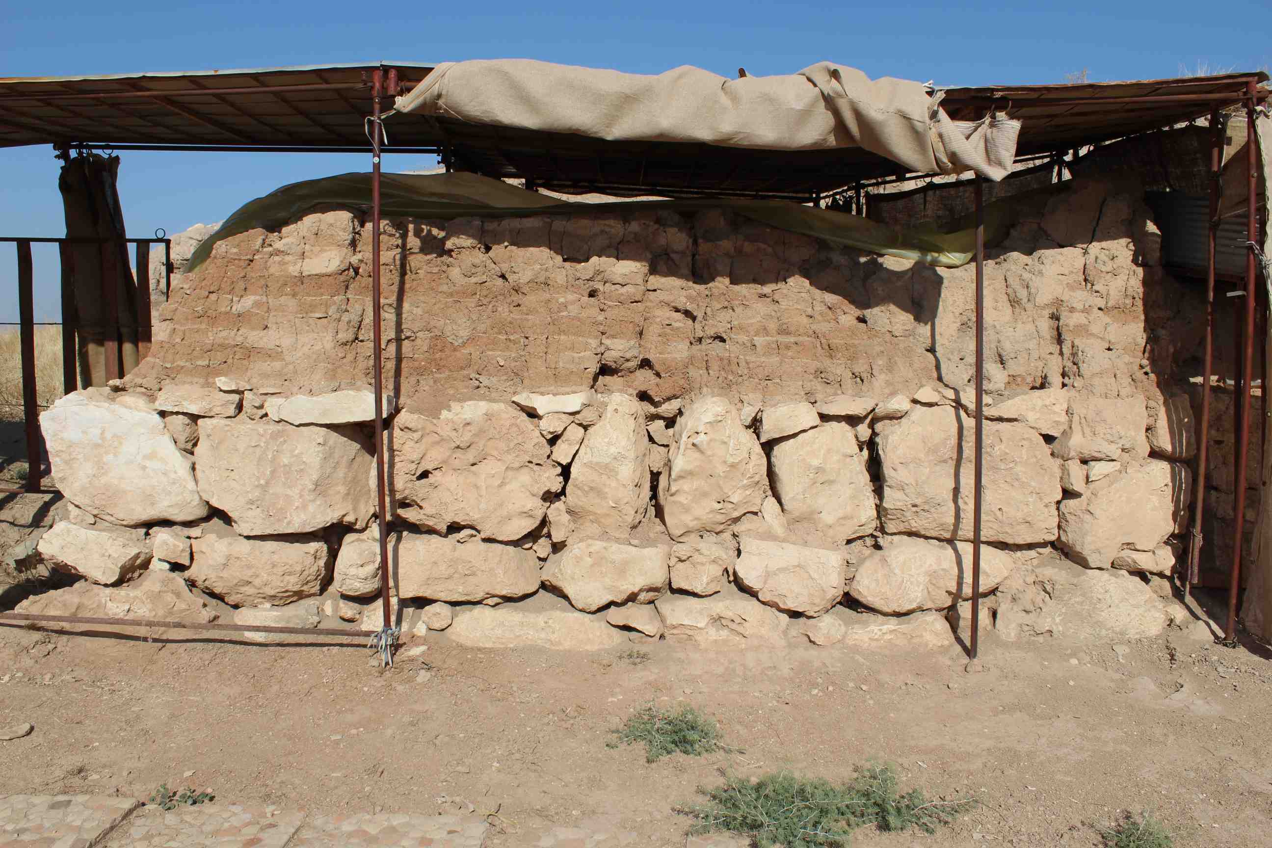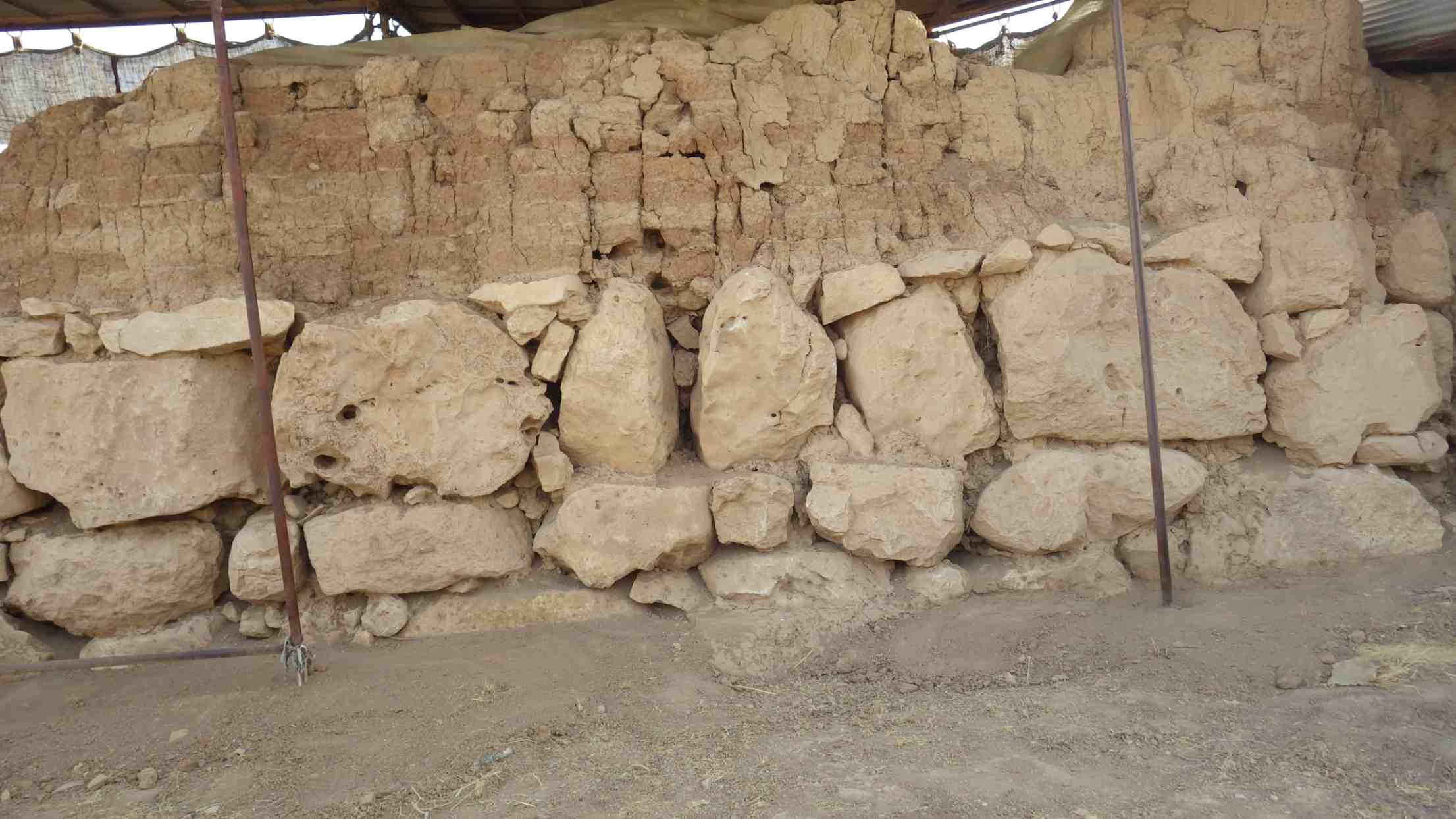 Stones are in a good shape. No additional losses in the small stones between the larger ones. The mud brick part seems to be slightly drier than it was in 2015. The plaster layer might be slightly frailer than before. In general, the wall is in good condition.