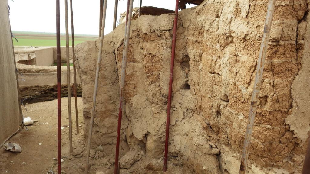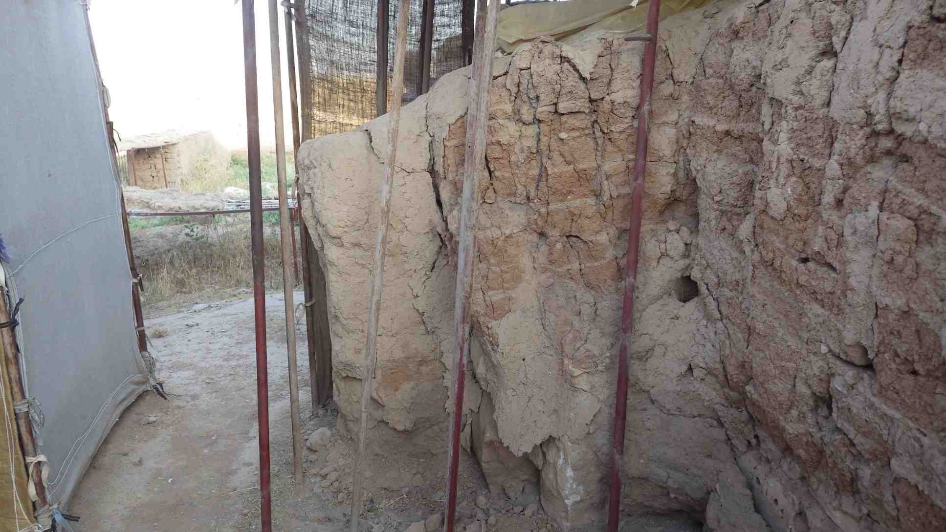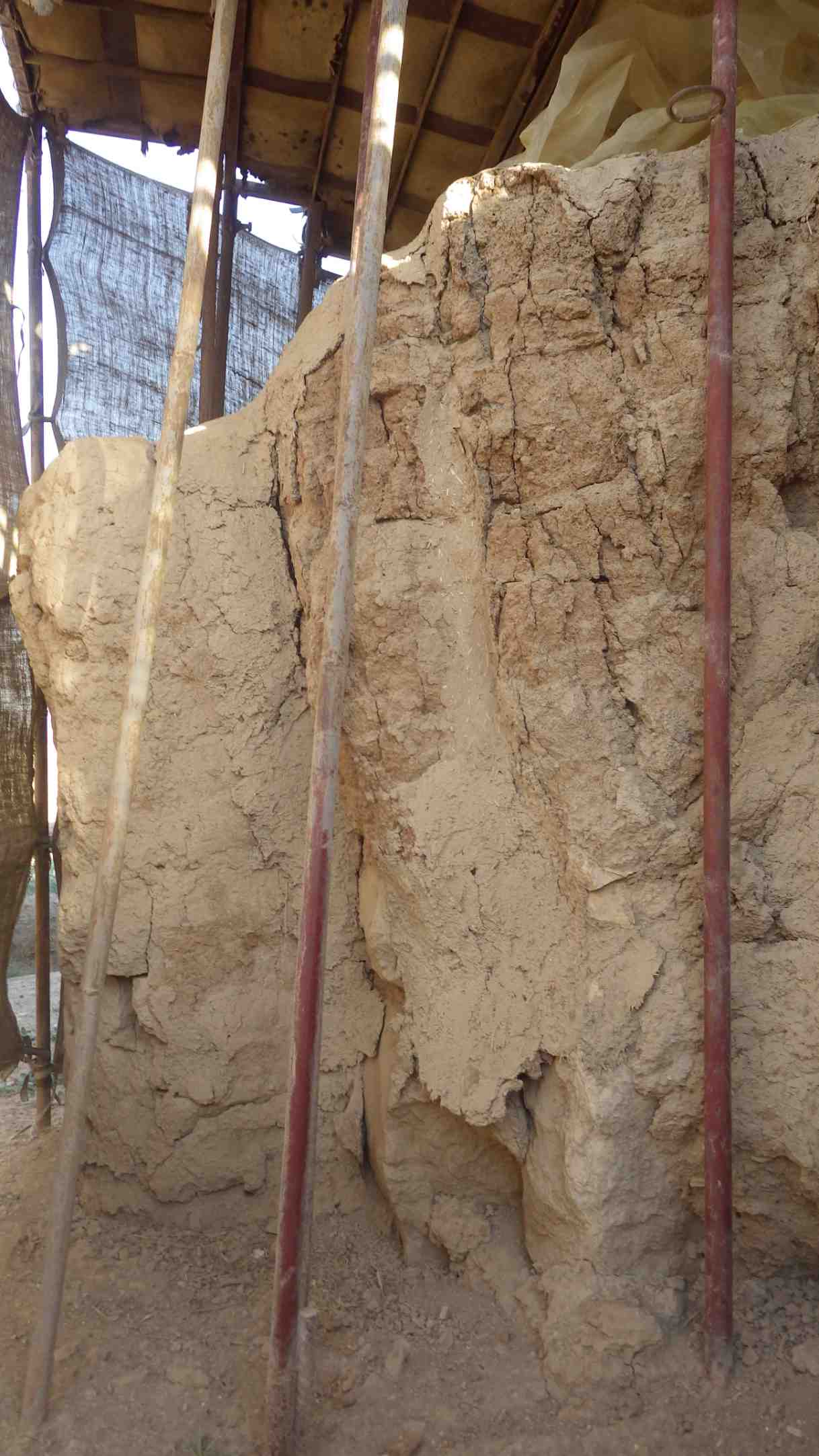 No losses in the mud brick or mortar, the mud plaster has slightly peeled. The wall is in good condition.