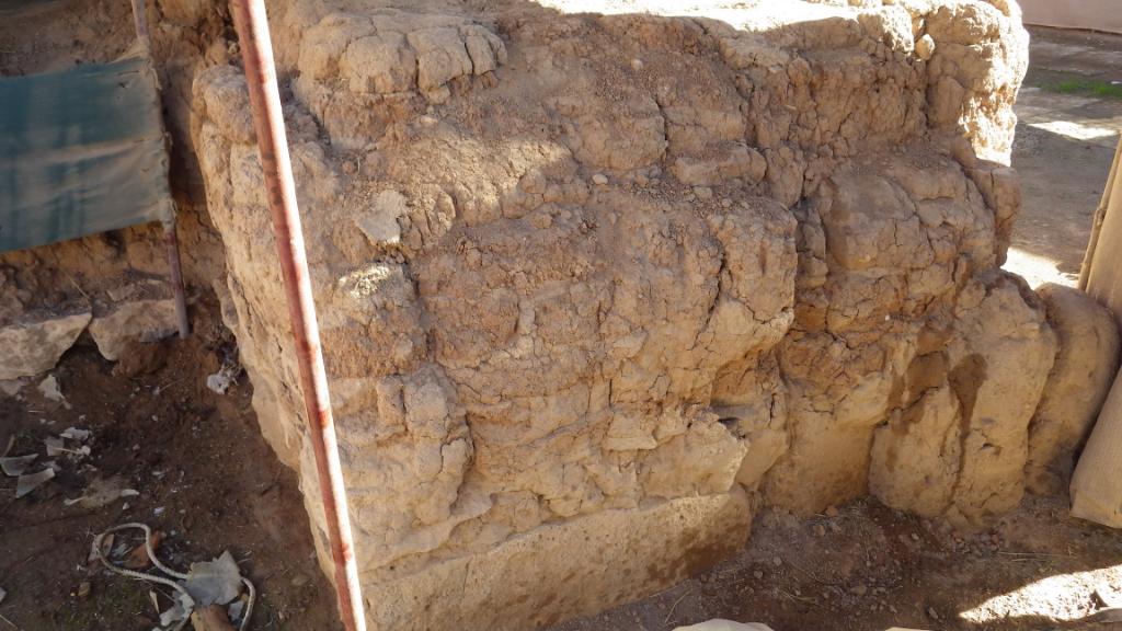 Wall appear to be slightly drier and crumblier than it was last year especially in the center. Part of the mudbricks in the right bottom corner has been completely lost.