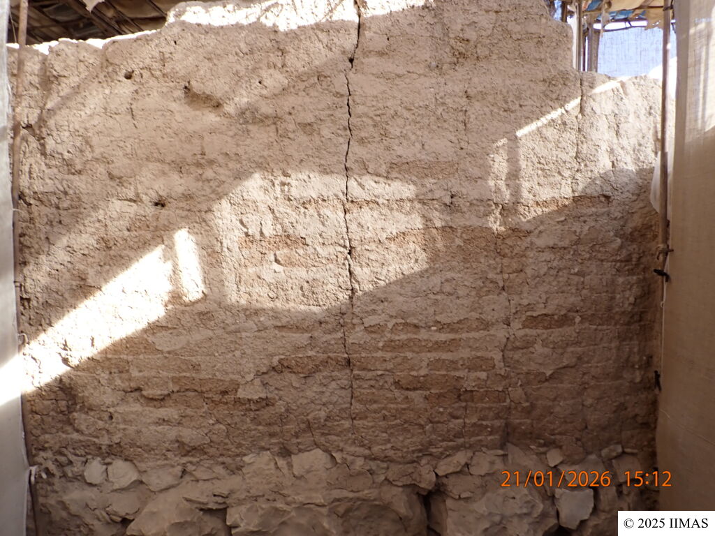 No changes in the wall. No increase in the length or width of the cracks. Face of the wall is in a good condition. No losses in the smaller stones.