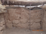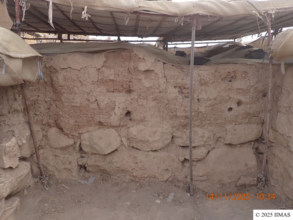 No significant changes compared to last year, except for a slight loss of plaster in the middle and upper part of the mud-brick section, with minor erosion on the left side. The stone foundation is in good condition.