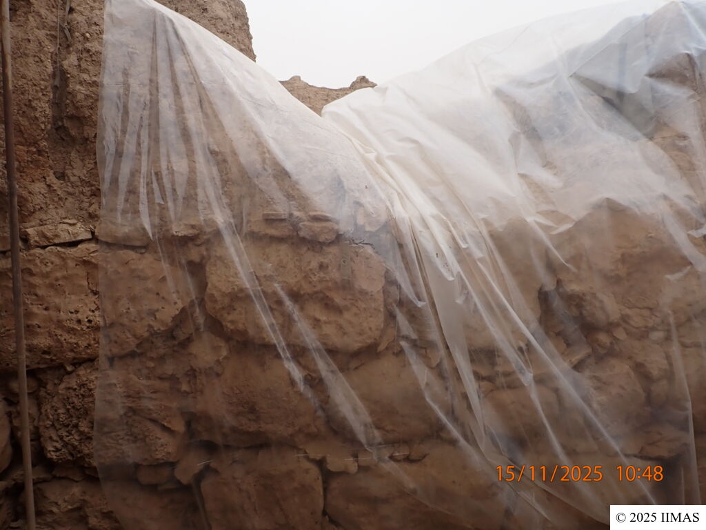 The wall is in good condition with no loss of stones. It was covered with plastic sheet (nylon) to protect it from weathering during the winter season.