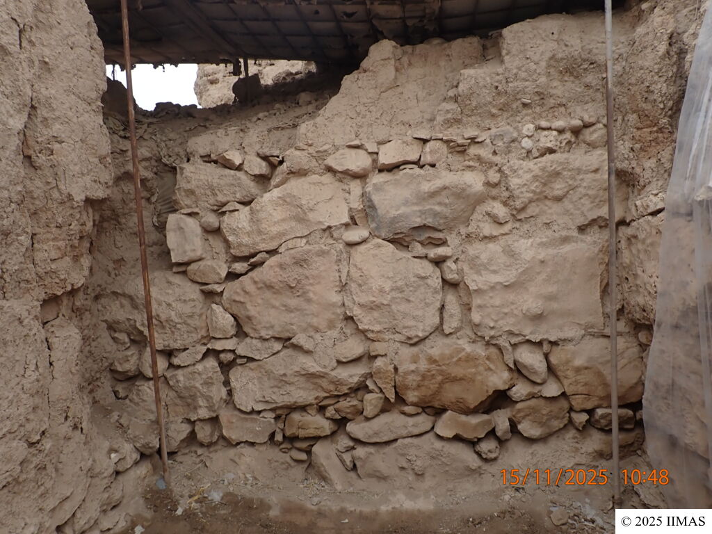The top-western surface of the wall that in 2001 was covered by the bisacce now is completely lost. The western corner is badly eroded and excavated by water, with the loss of smaller stones, sherds and mudbricks (September 2010, S. Ermidoro)