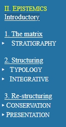 domain context method referentiality inner extra epistemics matrix aggregative analysis x assemblage structuring typology x integrative x x selected whole restructuring conservation x presentation x x