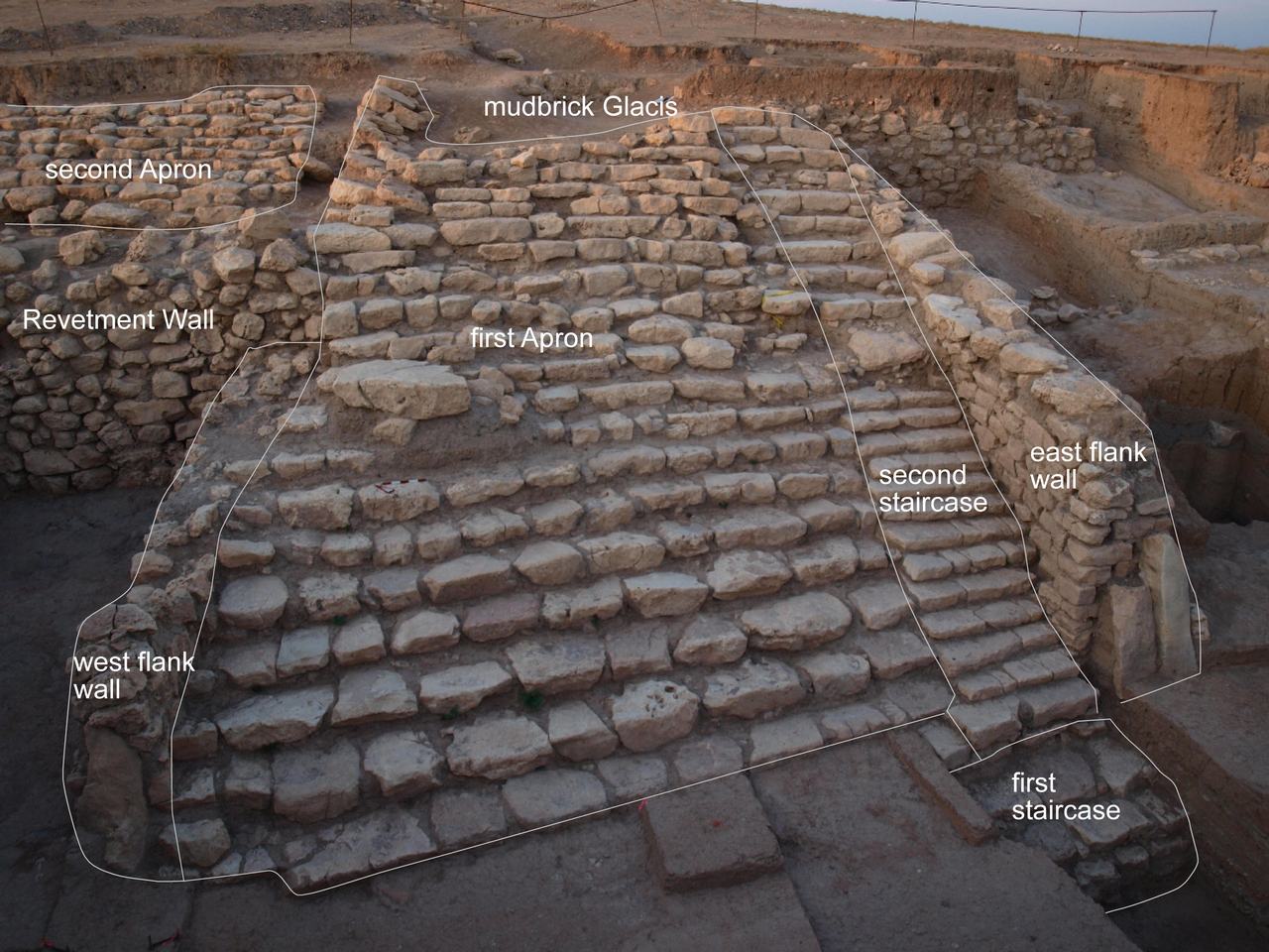 The Second Apron is a new architectural feature that was built during the Mittani period. During this period, there were repair phases on the staircase, the first apron and the walls in the area.