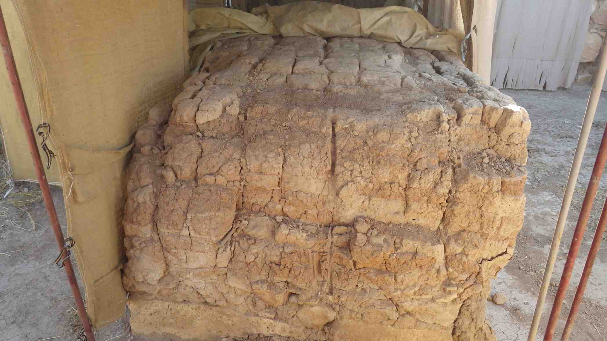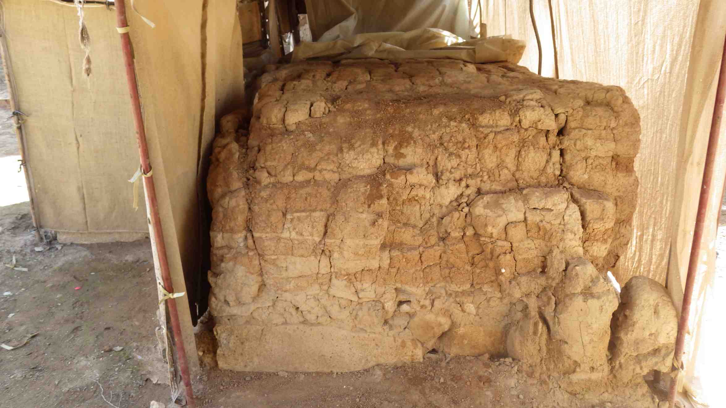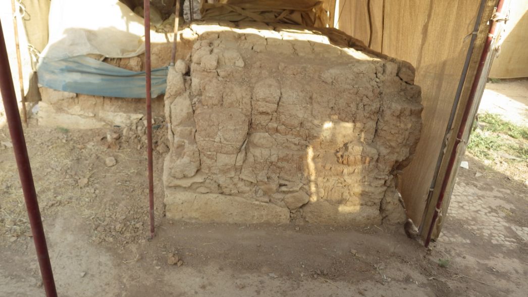 Wall appear to be slightly drier and crumblier than it was last year especially in the center. The compromised part of the mudbricks in the right bottom corner has been completely lost.