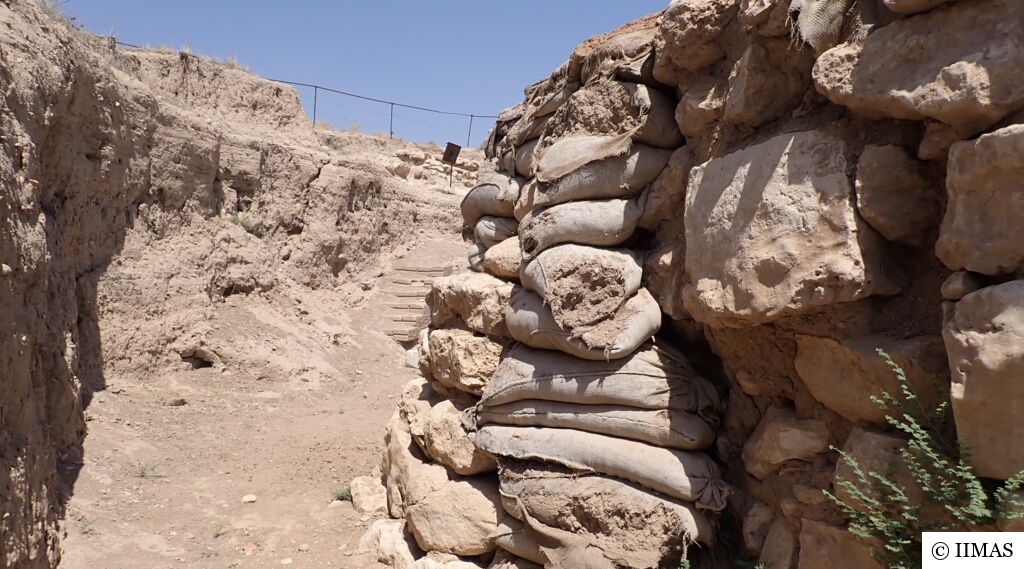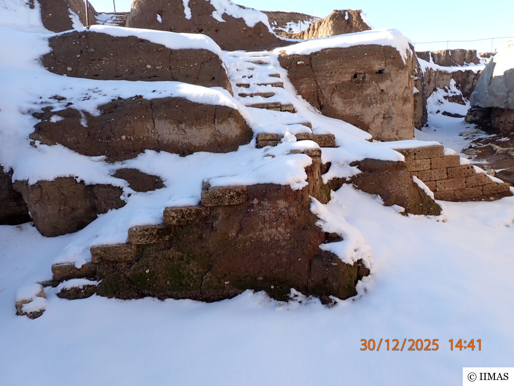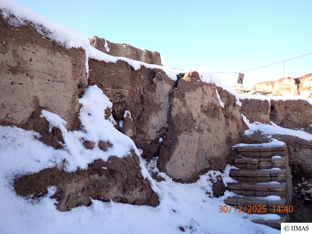The areas J1 and J5 within the plaza undergo regular inspections to ensure they remain clean, free of debris and weeds, and to maintain the safety of both the site and its visitors. In area J1, inspections focus on monitoring the condition of the section, ensuring that no collapses or deterioration are present, as well as checking the integrity of the burlap layer designed to prevent rainwater from reaching the face of the section. In area J5, inspections include verifying cleanliness and assessing the condition of the sandbags used as a retaining wall supporting the temple’s fence. In both areas, the pathways are examined to ensure they are in good condition and safe for visitors.