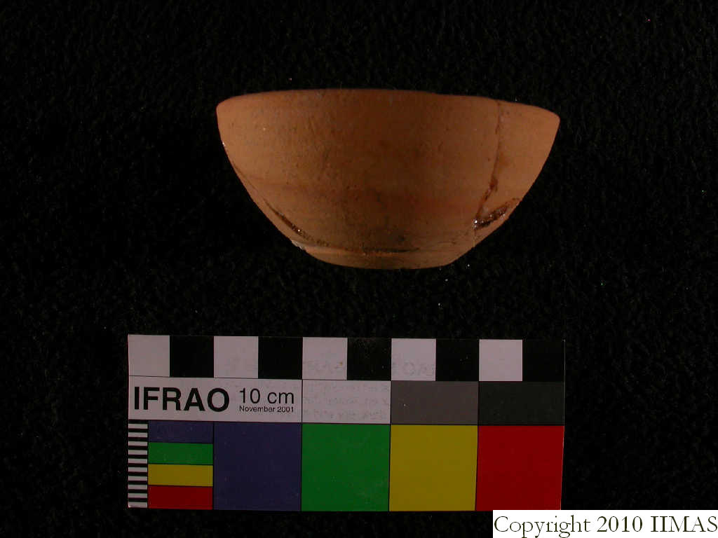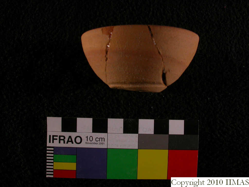 | Description | 2007-8-27 | cVP | small open bowl, probably miniature, wheelmade and oxidized [Input file: R827CVP.J / R827CVP.-J] |