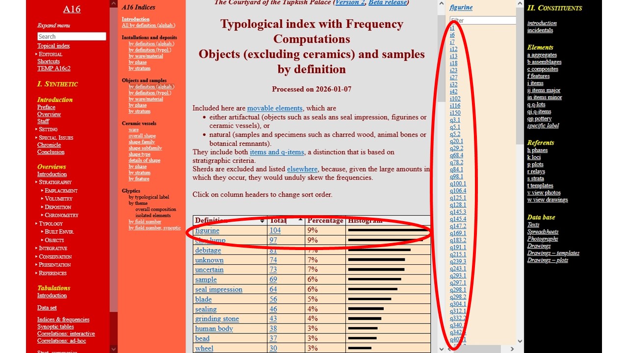 The major innovation afforded by a digital database is the possibility it provides to create instant visual renderings of quantitative information, once the data are stored digitally according to a fully developed categorization. There is almost no limit to the quantity of data that can be processed, and a wide variety of visual configurations are possible, such as bar histograms, pie charts, radar charts.