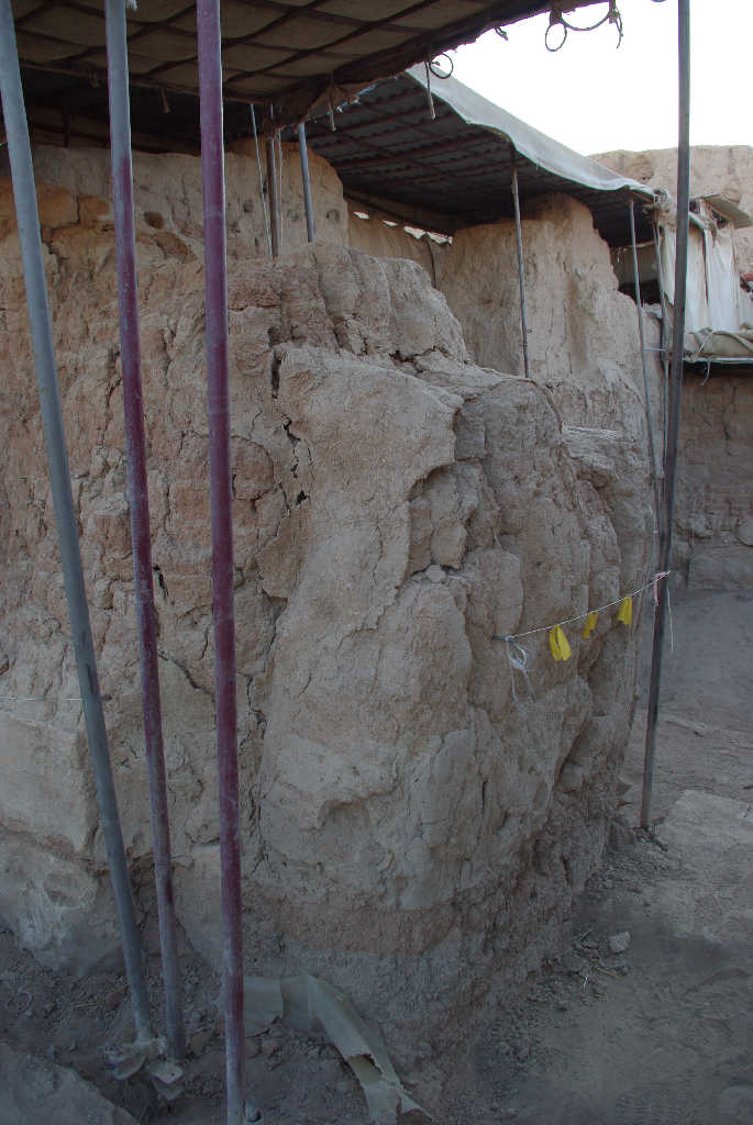 missing The wall is dry and fragile, there are cracks which may cause crumbling in the future specifically from the sides of the wall.