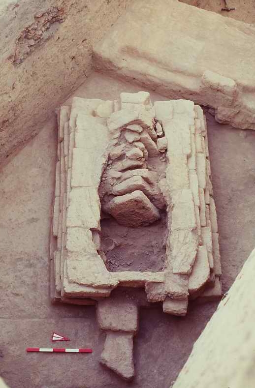Thus a tomb may be found complete, as in the example below, which includes a number of elements: the brick structure, a skeleton, individual offerings, accumulations that derive from the collapse of the roof made of vertical bricks resting on small wooden beams. The tomb then emerges as an aggregate, i. e., as a functional whole. But it needs in turn to be correlated to other elements