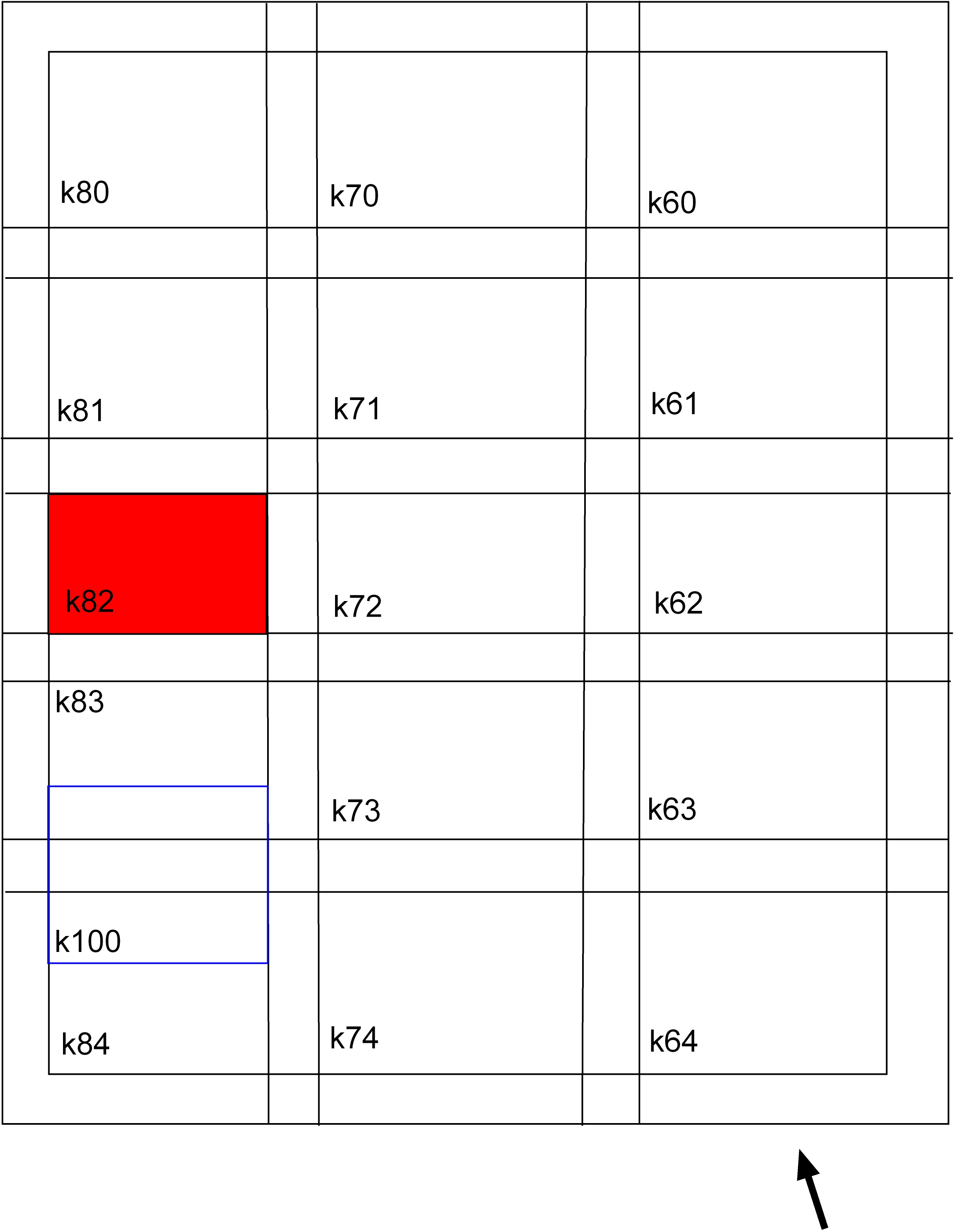 Today we continued to dig in k82. We started by removing f75 (q231) in the S area of the square. This layer was approximately 5cm in height. Once removed we expose f77, a very compact surface already noticed two weeks ago while digging 180m N from r35 in this square. We did a general cleaning of this compact accumulation in the S area of the square (i.e. 80m N and 200m E from r35, q233); we then stop digging in this square. [Input: Q909SC.j] |