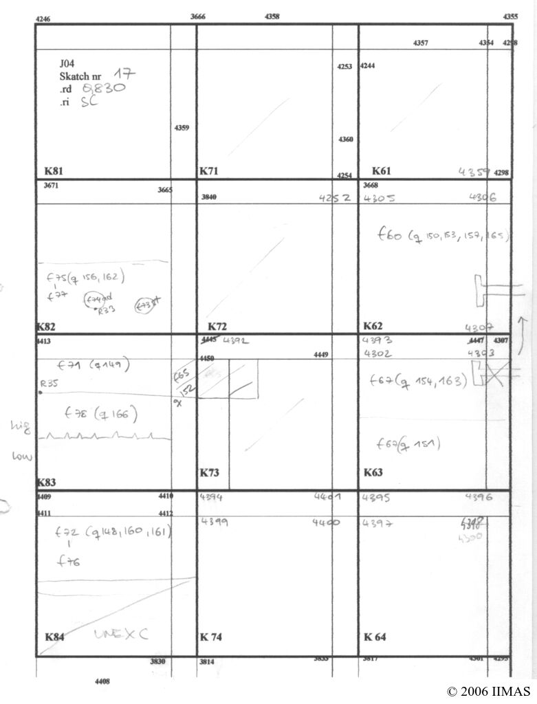 Below is an example of the daily sketch template of J4 loci, with hand drawings and notes, before it is converted into a vector drawing.
