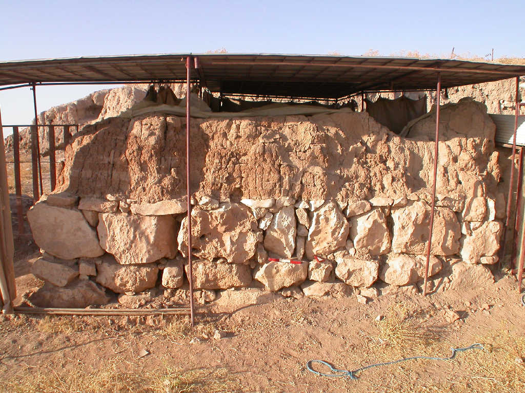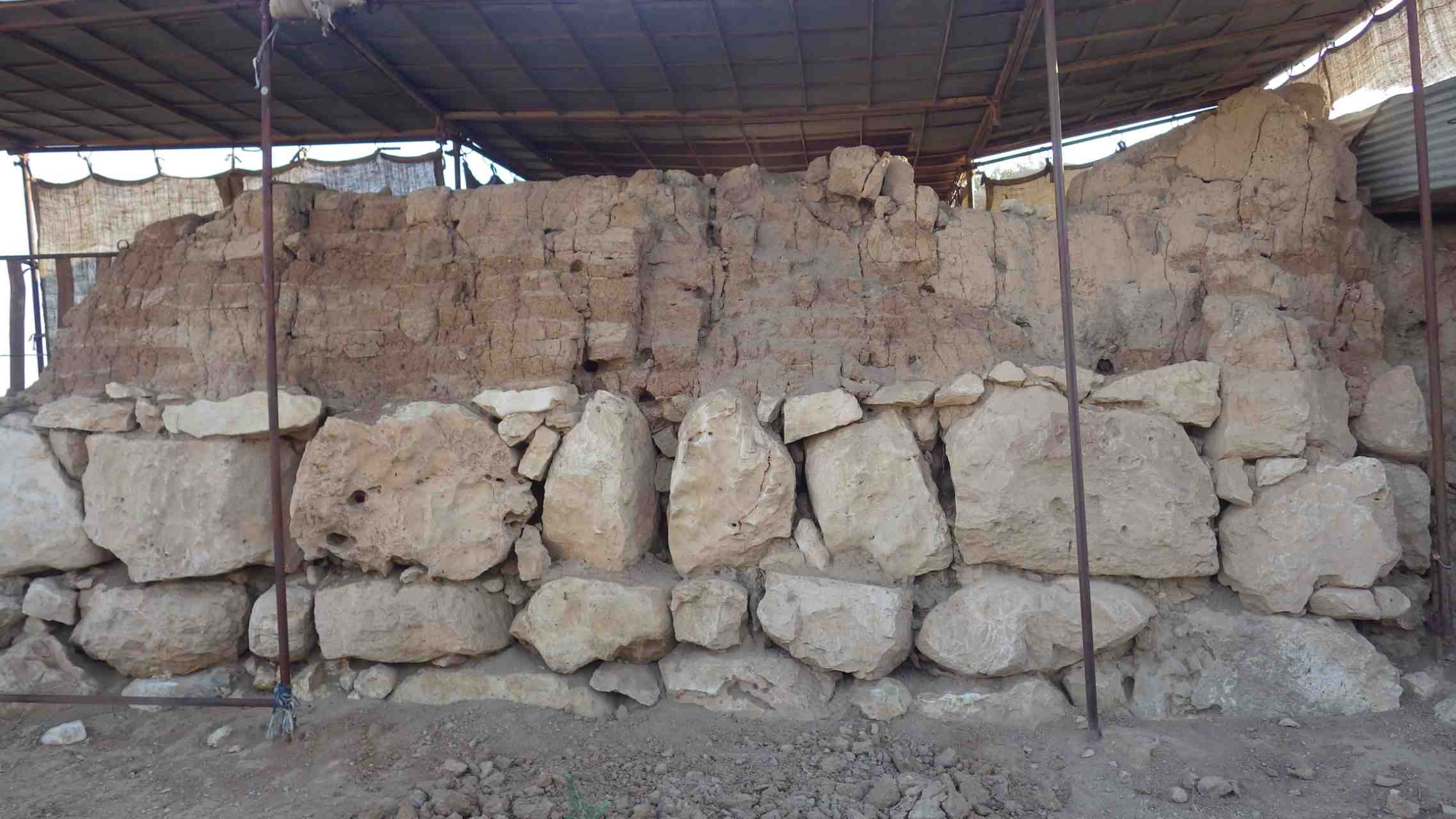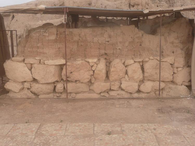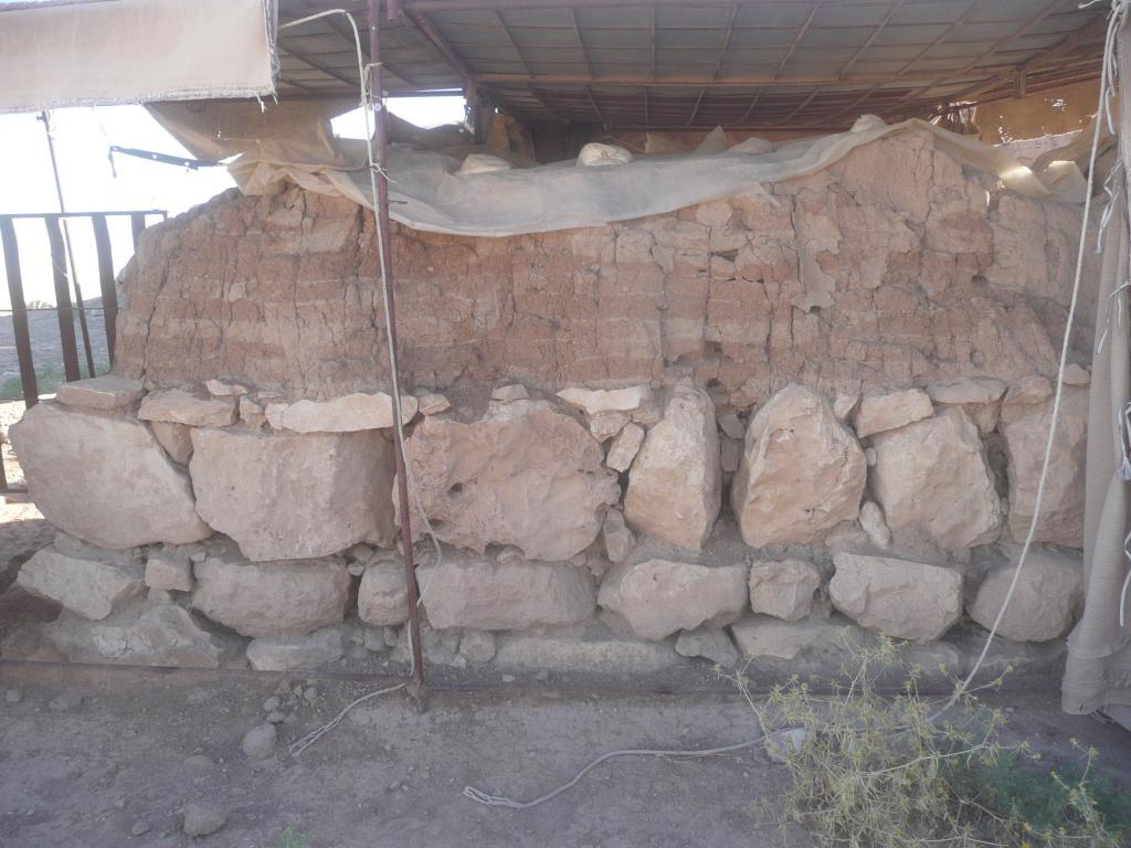Stones are in a good shape. No additional losses in the small stones between the larger ones. The mud brick part seems to be slightly drier than it was in 2015. The plaster layer might be slightly frailer than before. In general, the wall is in good condition.