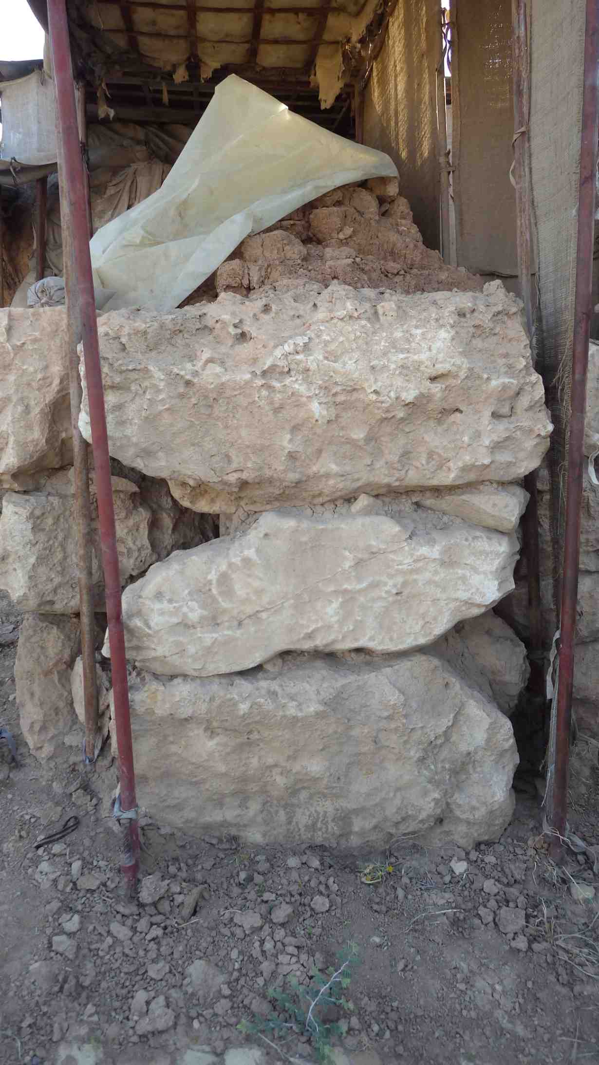 No visible changes on this wall, except for a small hole in the upper part in the mud bricks.