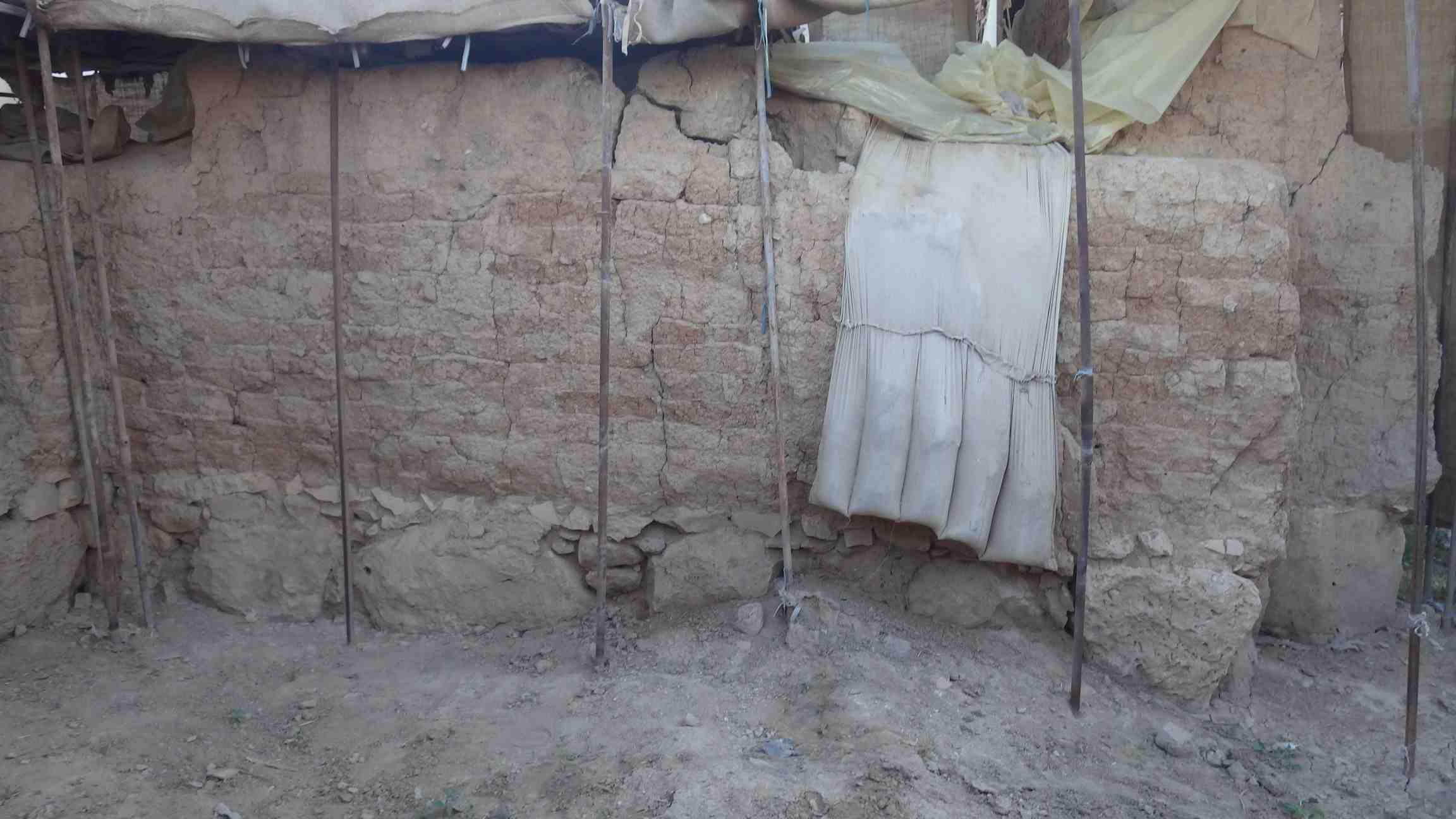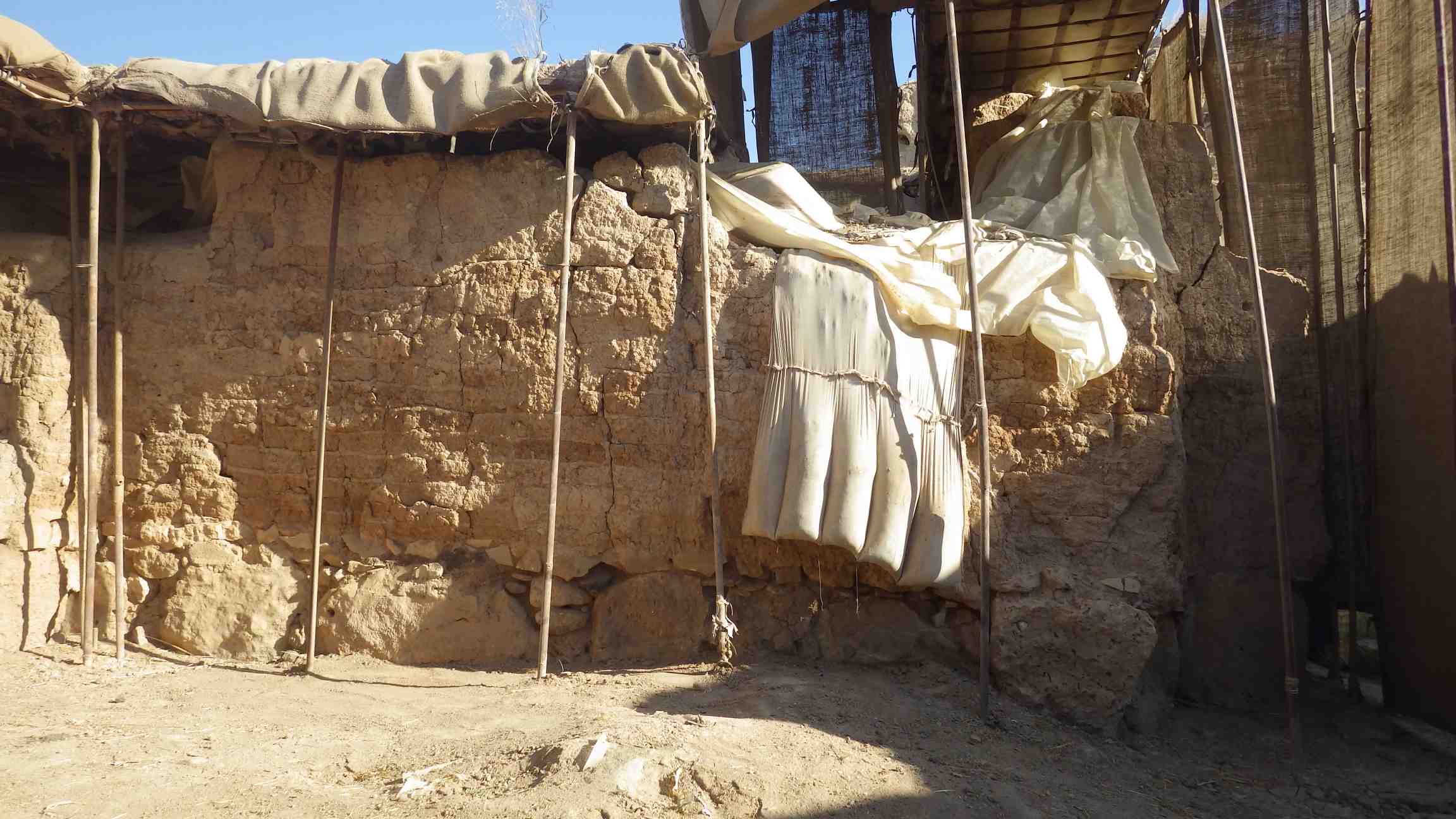 No loss in mud brick, the stones are in good shape, there are some cracks in the middle and on the right side, the right one seems wider than it was last year. Overall, the wall is in good condition.