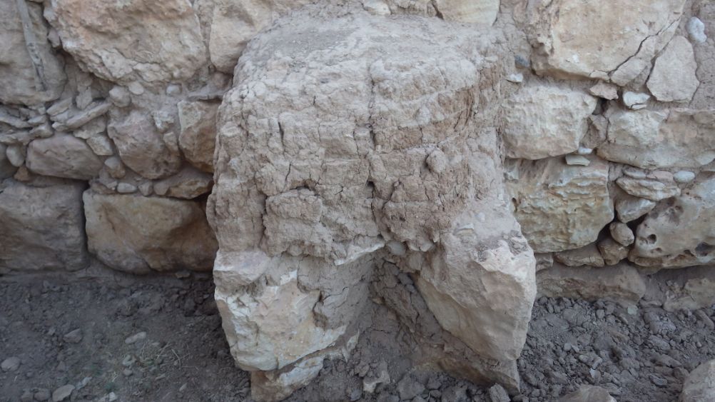 The wall seems fragile but no loss in mud bricks and the stones are in good shape, some cracks appeared.