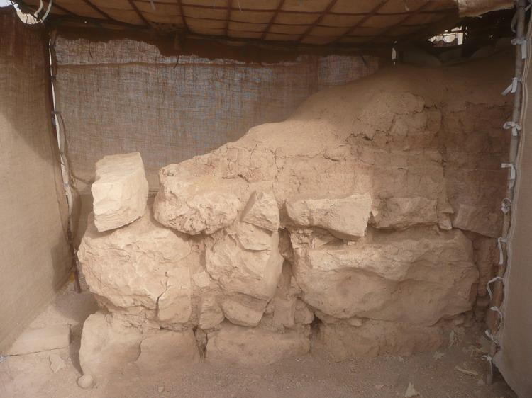 Overall, the wall is in good condition, except for a very slight erosion of the mud plaster from the corner.