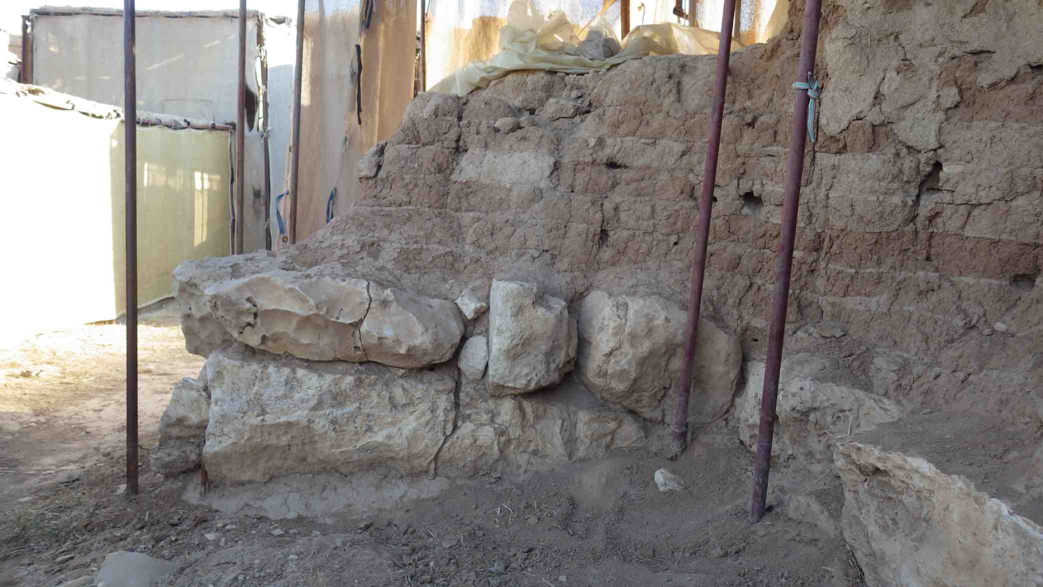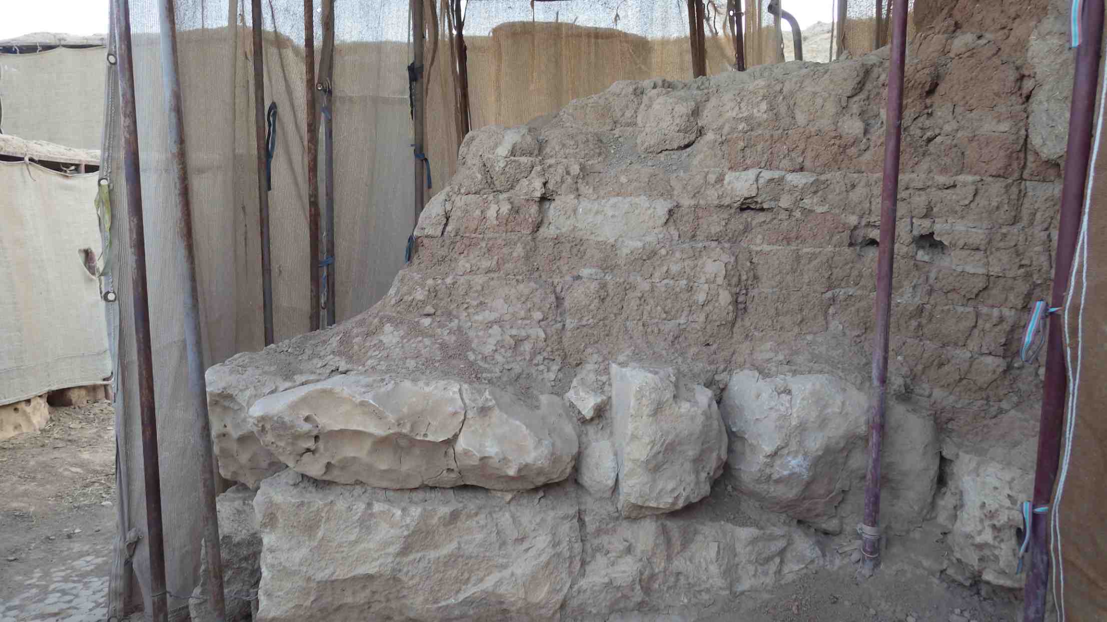 No losses in the mud bricks or stones. The top part of the wall eroded and lost parts of mud bricks.