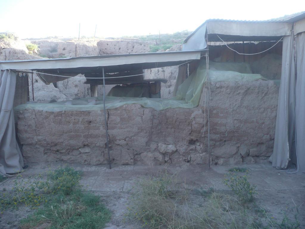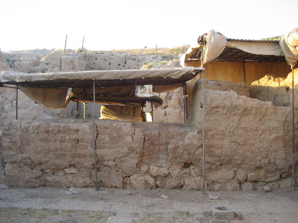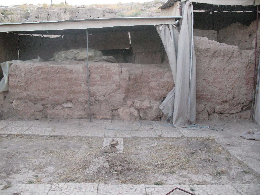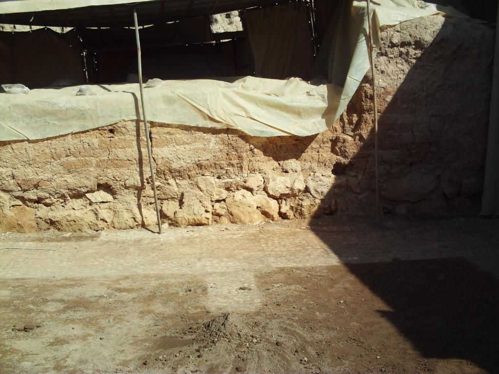 No loss in mud bricks or mortar the wall lost some small stones on the left side of the stone part. The cracks are the same as last year. In general, the wall is in good shape.
