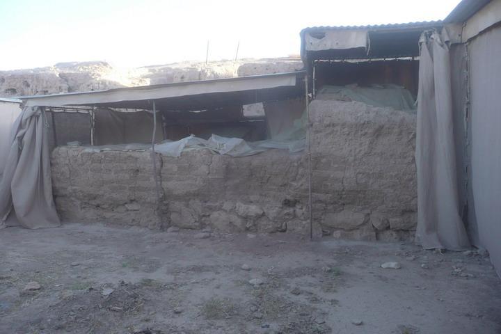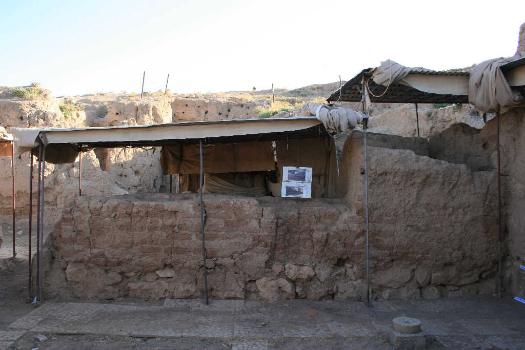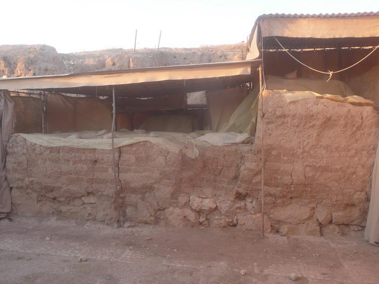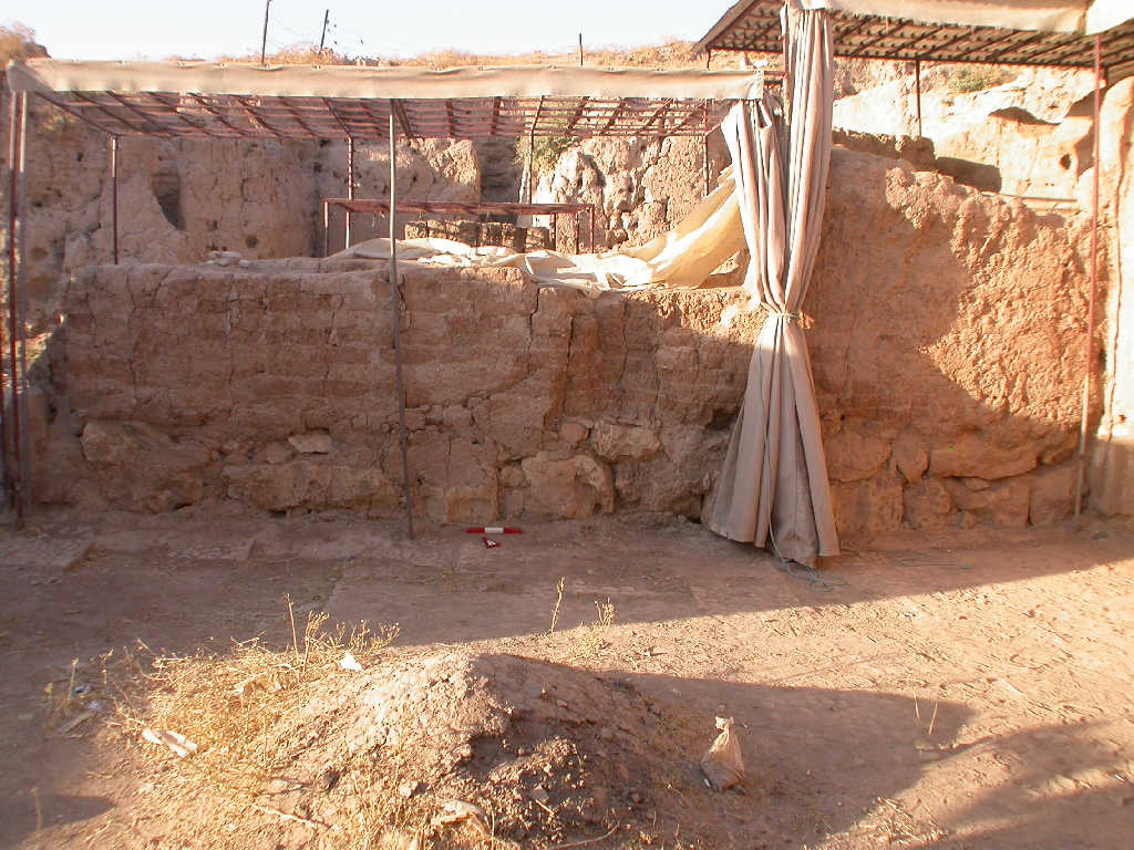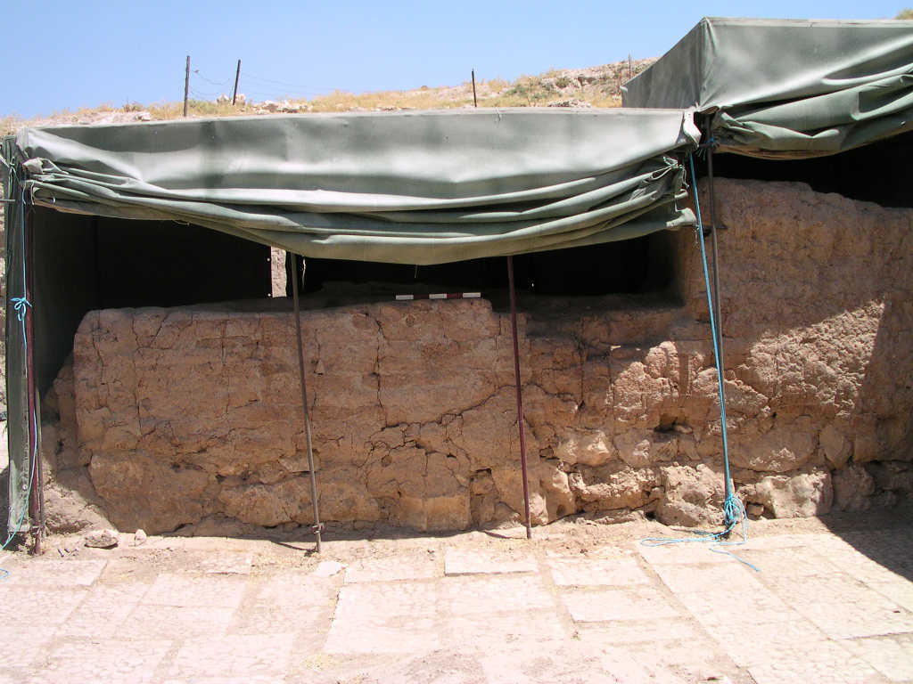 No loss in mud bricks or mortar the wall lost some small stones on the left side of the stone part. The cracks are the same as last year. In general, the wall is in good shape.