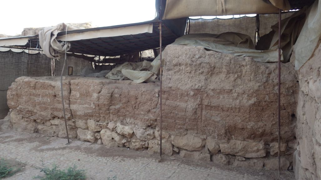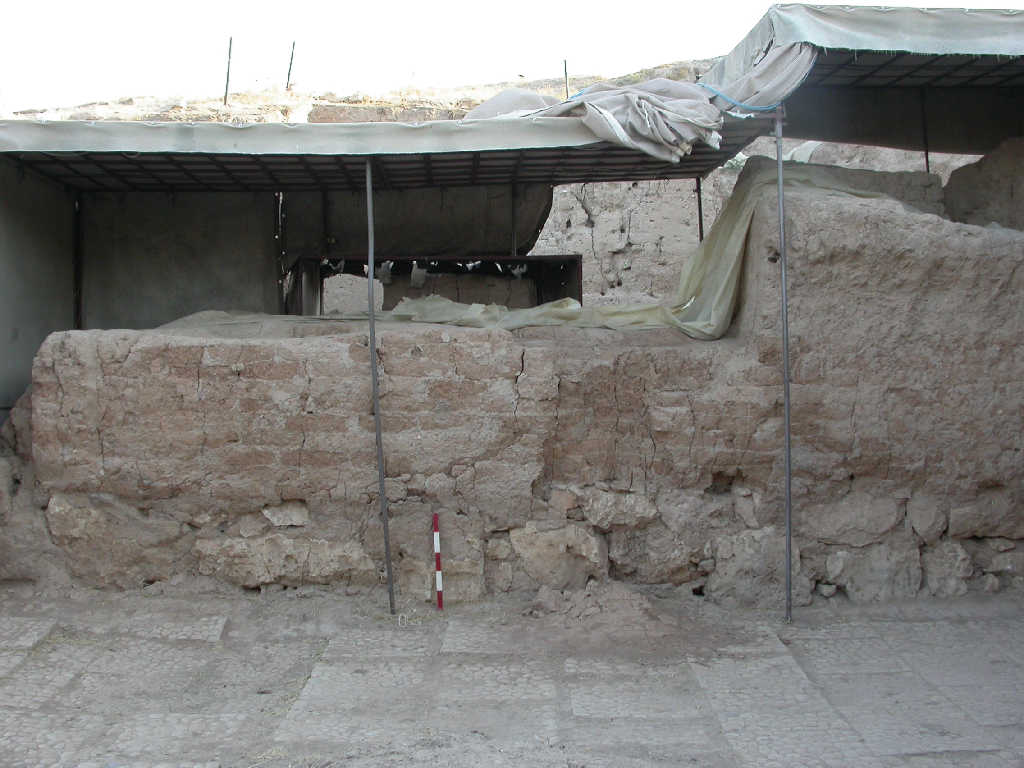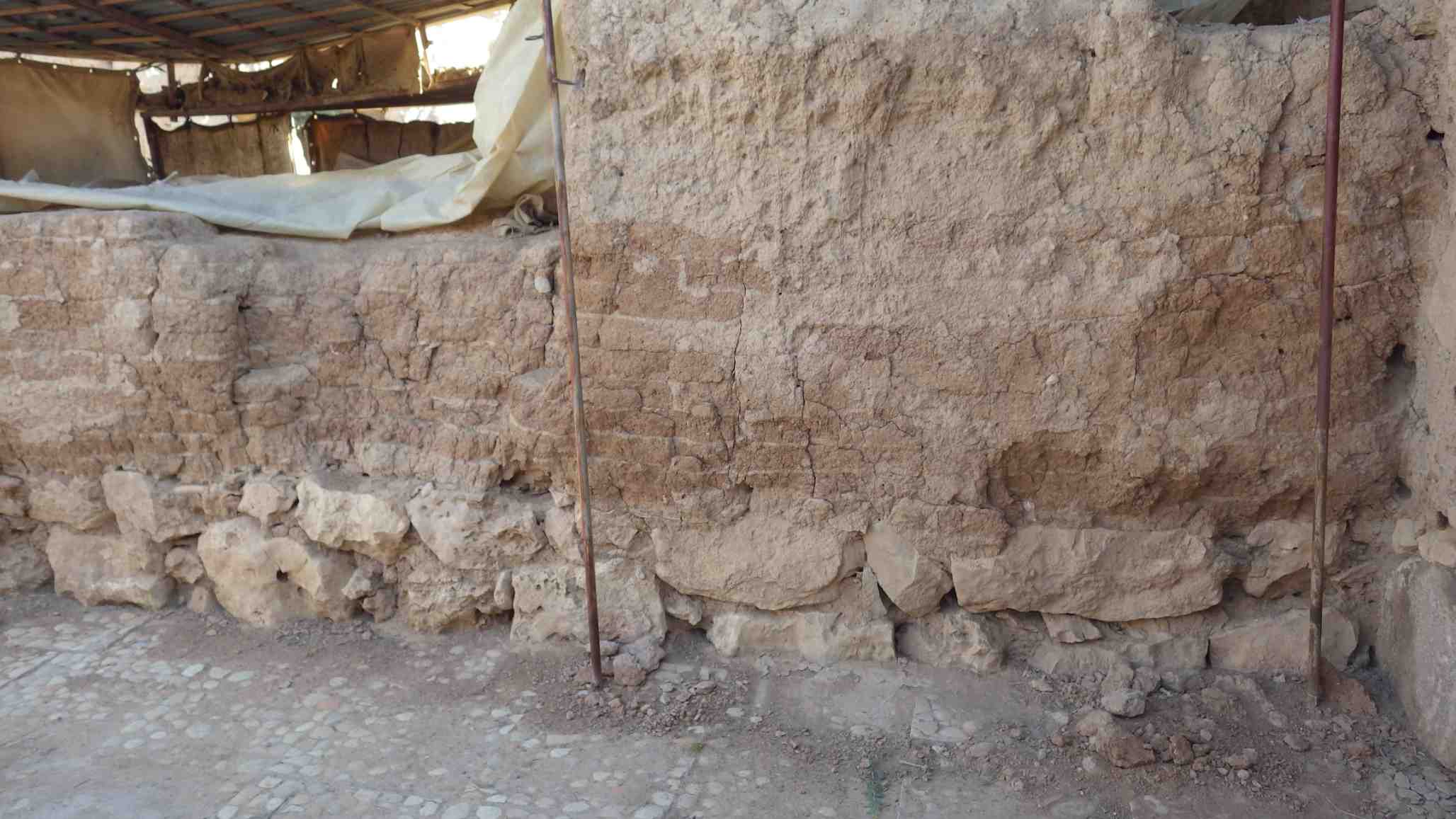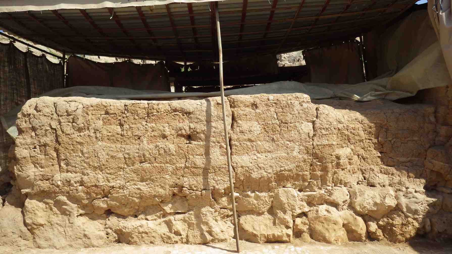 The wall is in a good condition. There was a loss in the mud brick on the right side directly above the stone layer. This loss does not jeopardize the integrity of the wall.