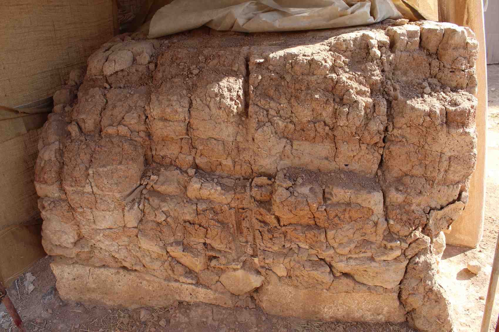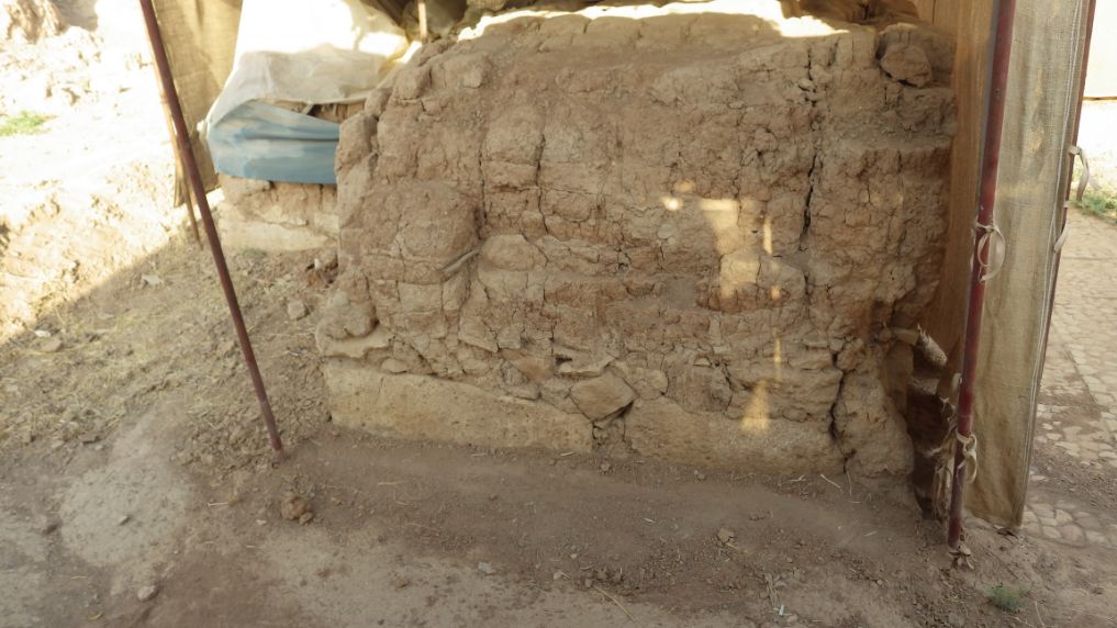 Wall appear to be slightly drier and crumblier than it was last year especially in the center. Part of the mudbricks in the right bottom corner has been completely lost.