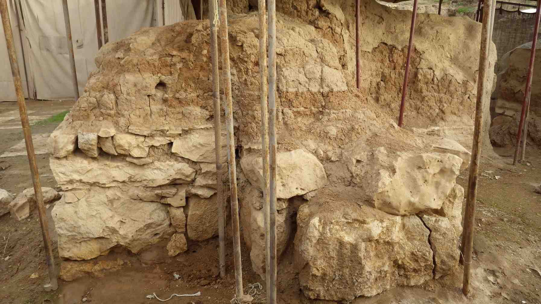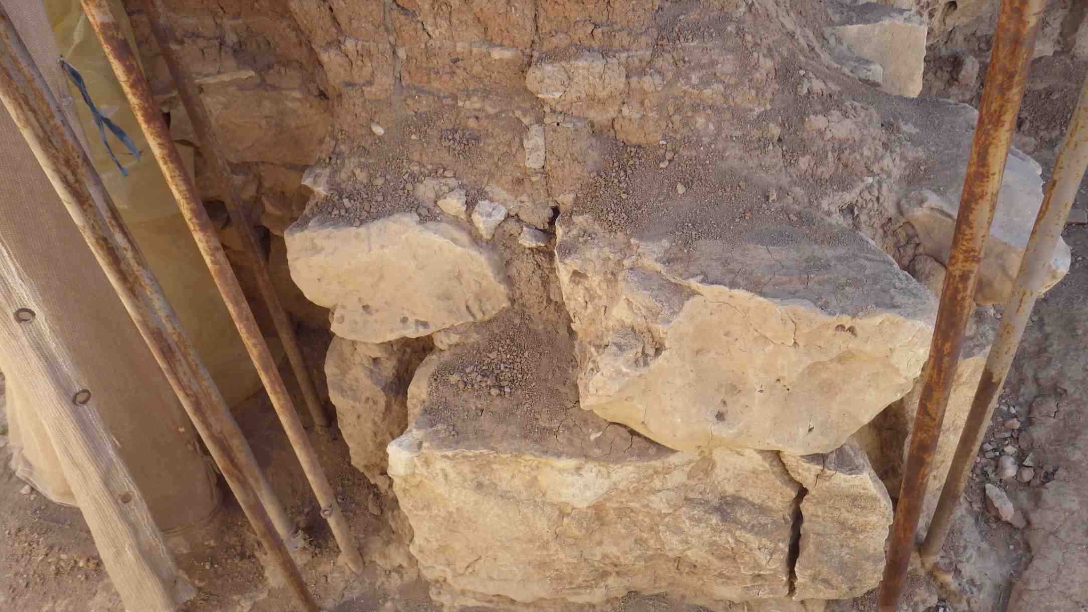 Photographic documentation is not suitable to make an assessment about the mudbrick part of the wall.