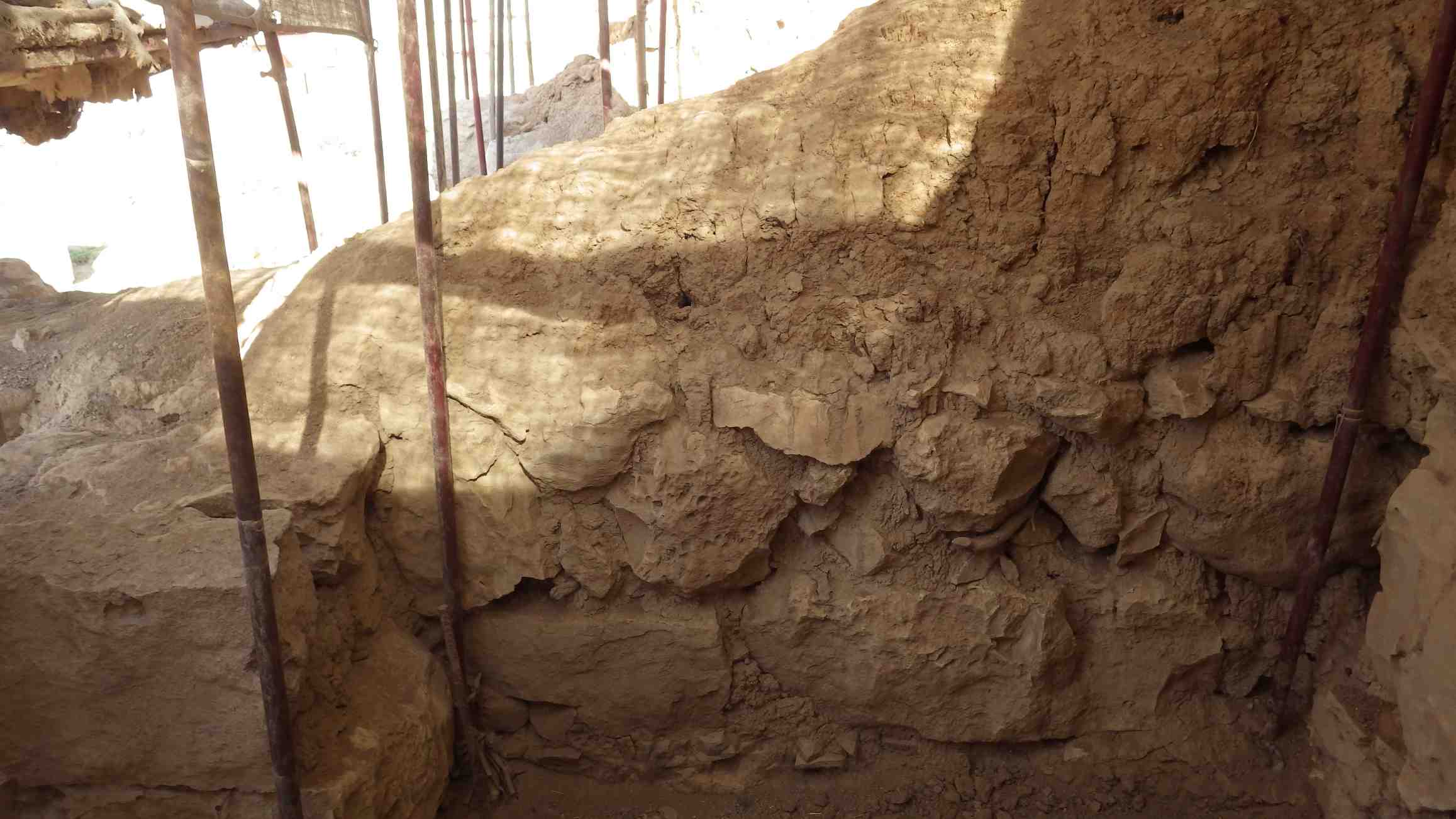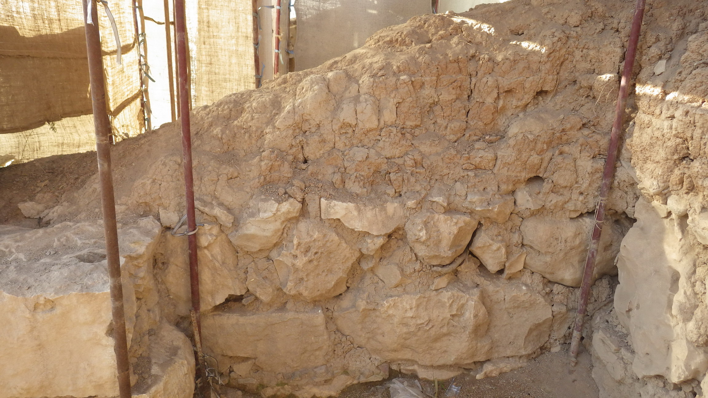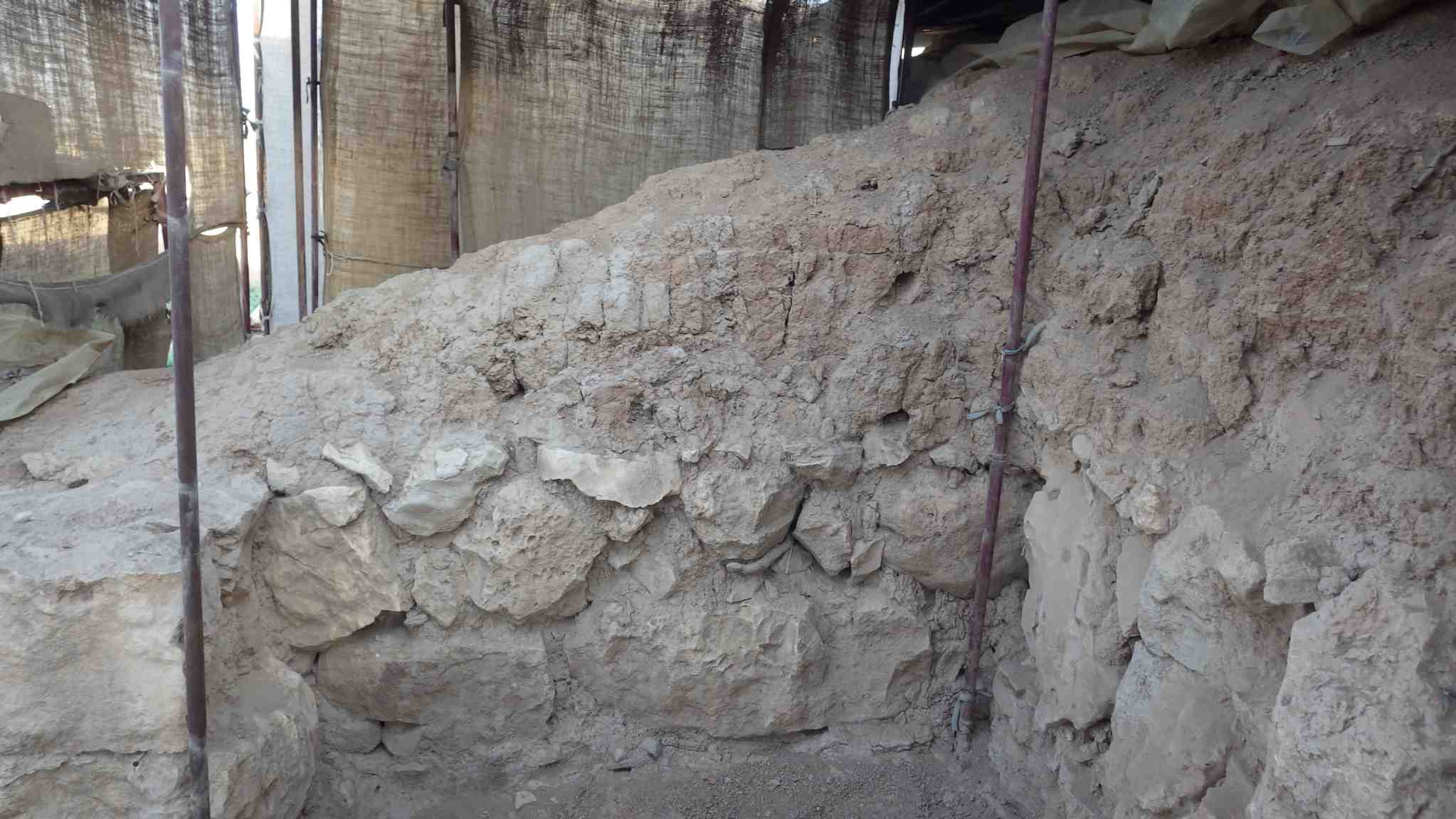 The stones are in good shape, the wall is dry in the top part especially the surface layer of plaster on the right side. Overall, the wall is in good shape.