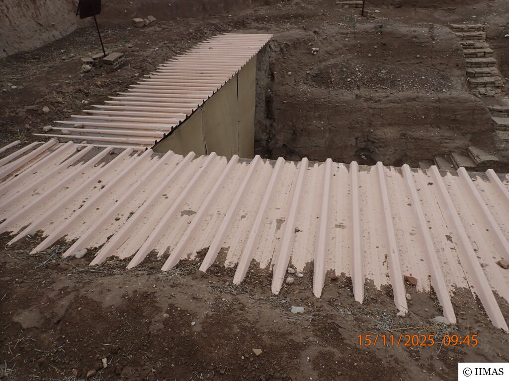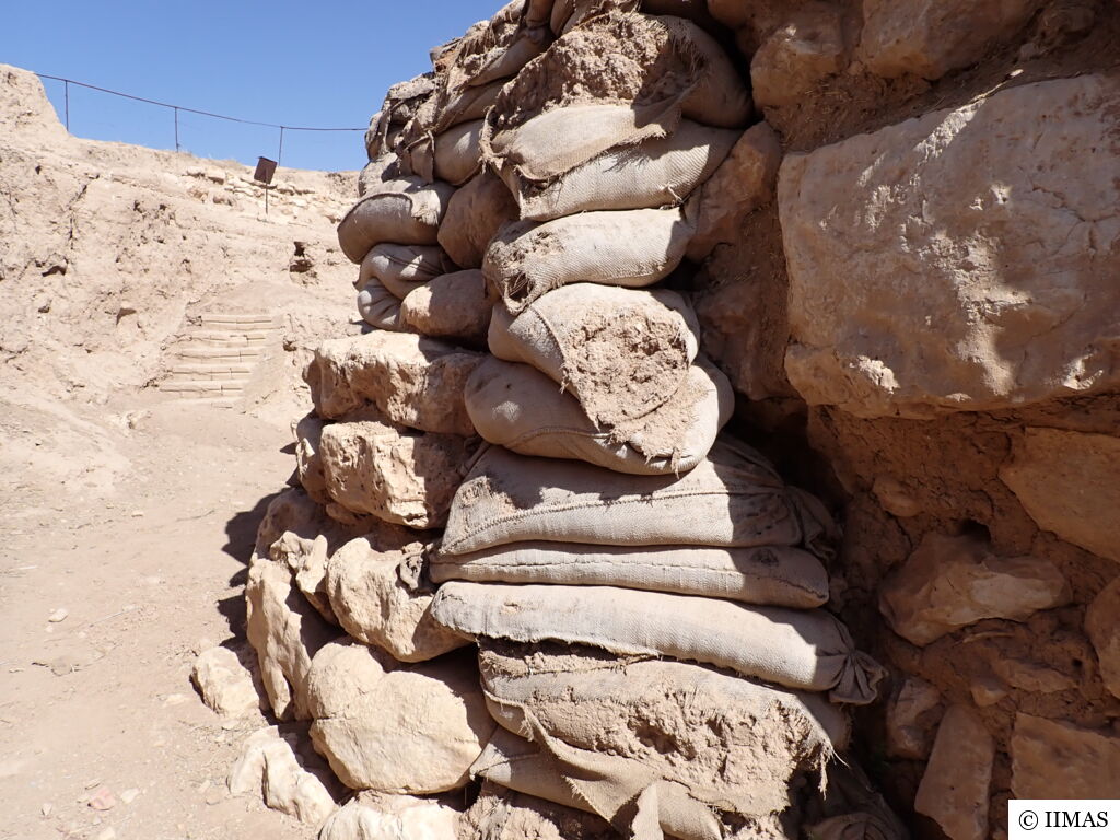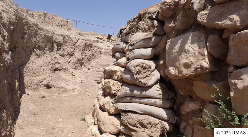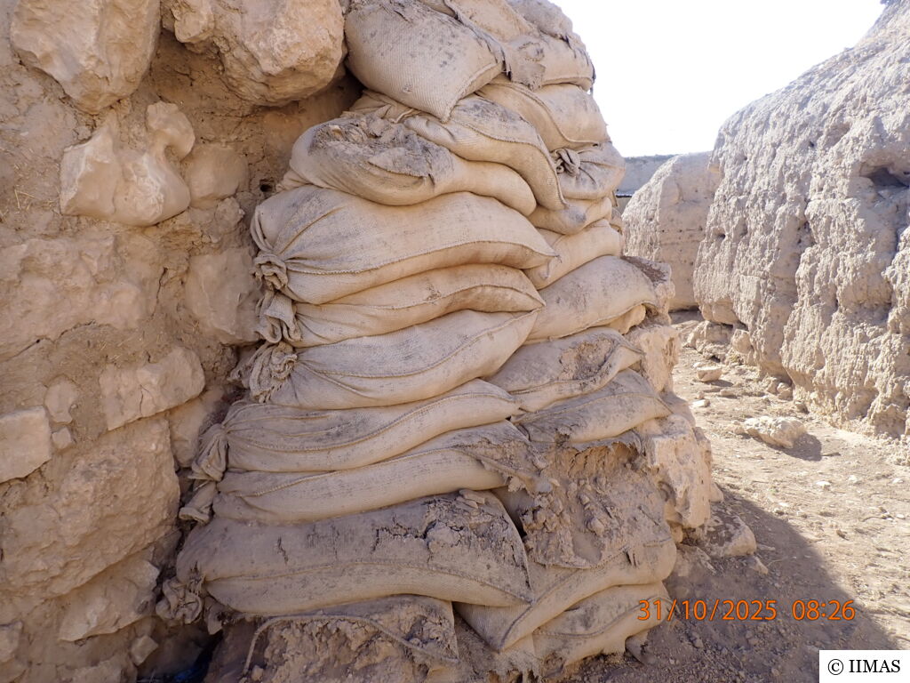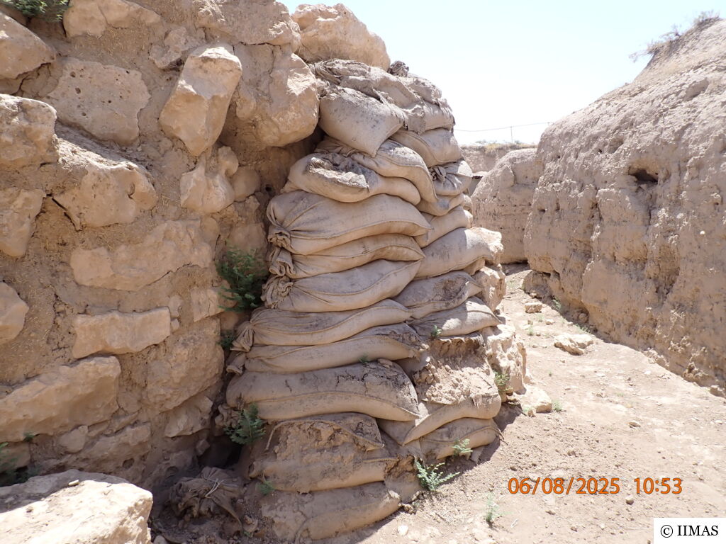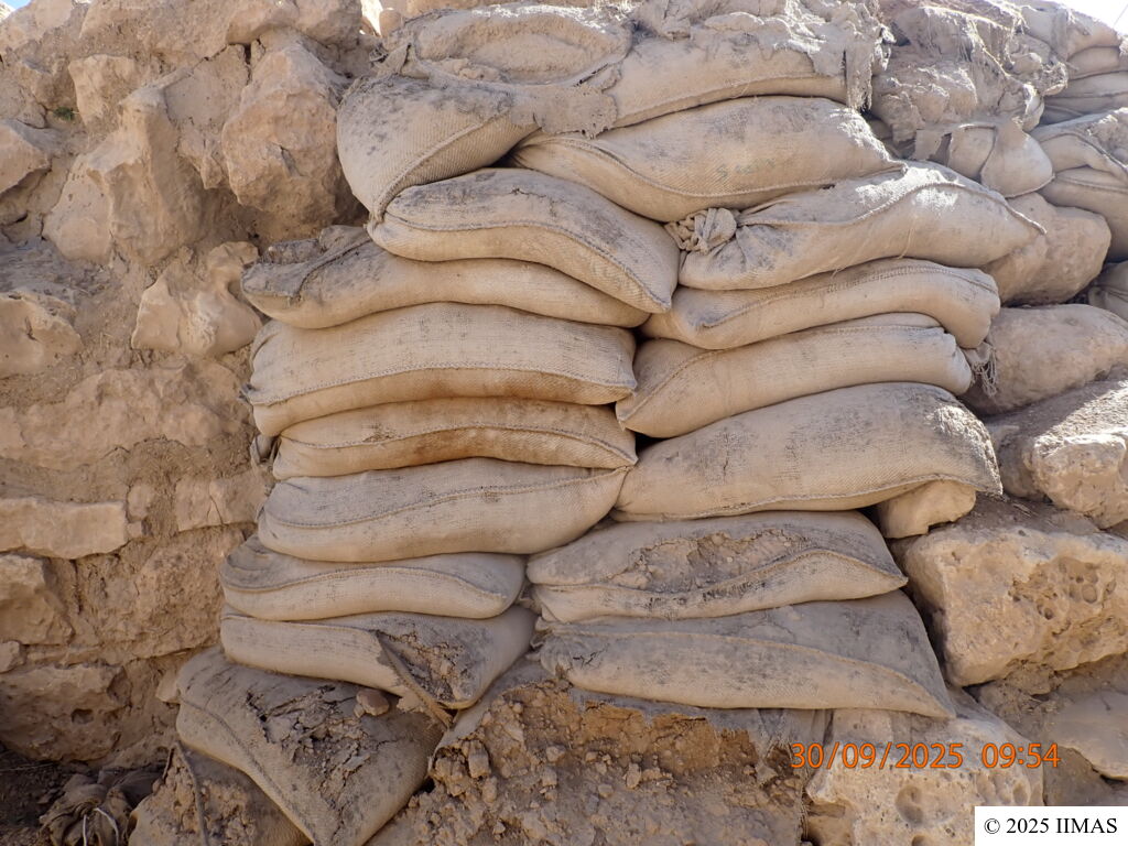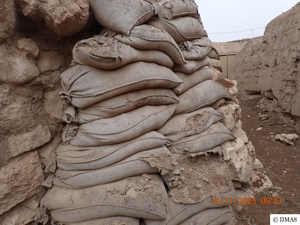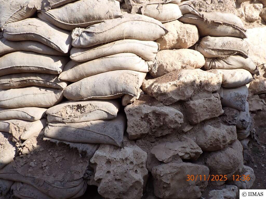The areas J1 and J5 within the plaza undergo regular inspections to ensure they remain clean, free of debris and weeds, and to maintain the safety of both the site and its visitors. In area J1, inspections focus on monitoring the condition of the section, ensuring that no collapses or deterioration are present, as well as checking the integrity of the burlap layer designed to prevent rainwater from reaching the face of the section. In area J5, inspections include verifying cleanliness and assessing the condition of the sandbags used as a retaining wall supporting the temple’s fence. In both areas, the pathways are examined to ensure they are in good condition and safe for visitors.