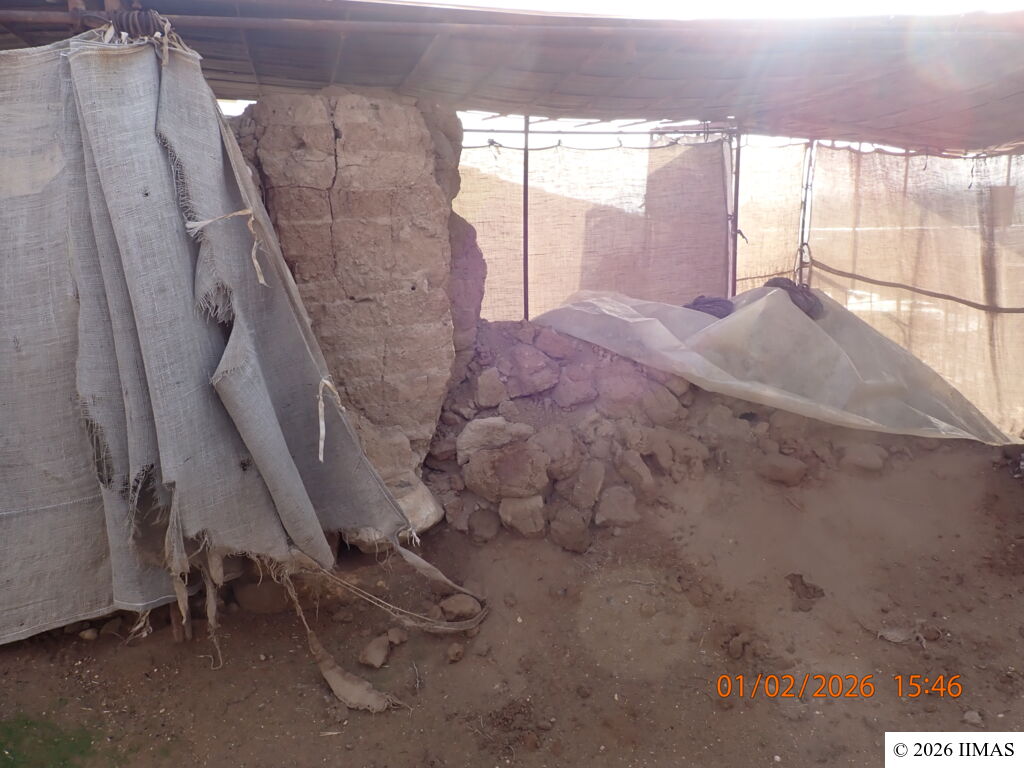 - The burlap covering of 9 walls is completely torn, and as a result, parts of some walls have deteriorated in the mud-brick, such as walls F1-4, C1-5 and C8-4.