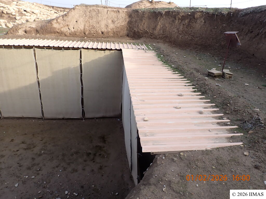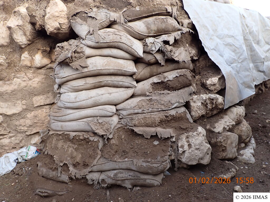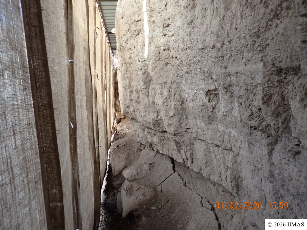 The areas J1 and J5 within the plaza undergo regular inspections to ensure they remain clean, free of debris and weeds, and to maintain the safety of both the site and its visitors. In area J1, inspections focus on monitoring the condition of the section, ensuring that no collapses or deterioration are present, as well as checking the integrity of the burlap layer designed to prevent rainwater from reaching the face of the section. In area J5, inspections include verifying cleanliness and assessing the condition of the sandbags used as a retaining wall supporting the temple’s fence. In both areas, the pathways are examined to ensure they are in good condition and safe for visitors.