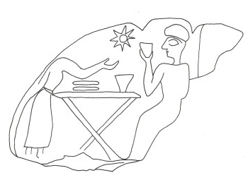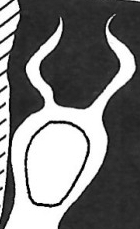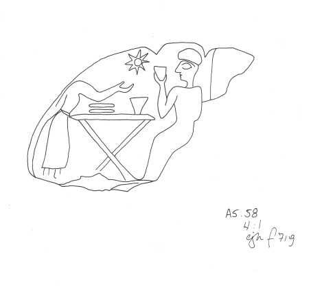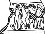 The figures can sometimes have a size mixture, depicting large and small figures in the same composition. In the example A6.103 there are different figure sizes as in the two small animals above the larger figures. This and overlapping figures are rare in this style so that neither of these aspects is characteristic for the Dotted Eye Style but shows the variation that can be found in it.
