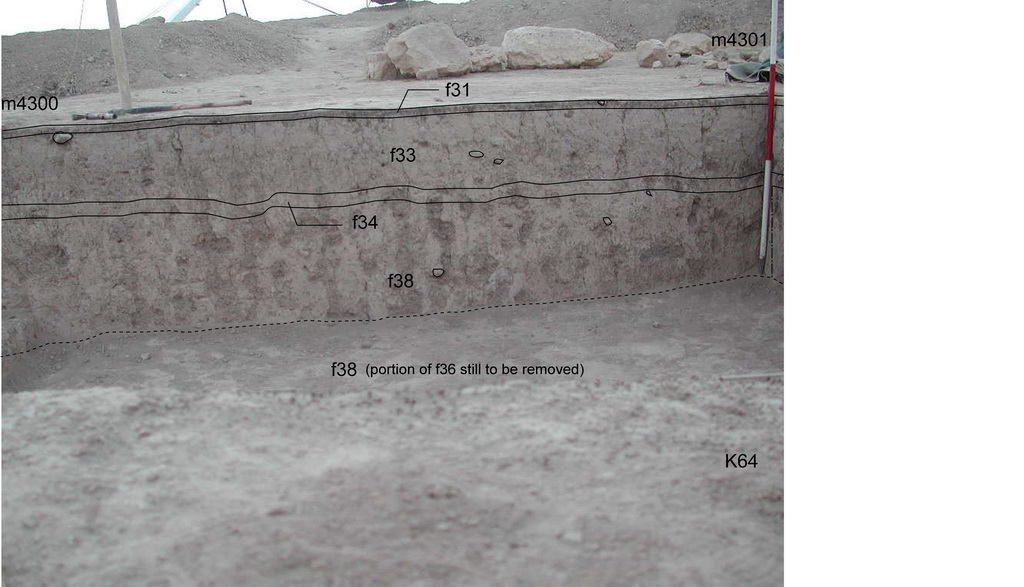 J4 containes many accumulation layers, and many isolated stones. the stones were resting on accumulation layers in most cases. The natural accumulation on which the stones rested, were given a feature number and termed pedestal. In reality, these are not prdestals that were intentionally created as pillars of soil for these stone, but they were rather excavated this way because the team was trying to understand the situation and the nature of these stones before removing them, hence excavating around them and giving these “pedestals” a different number.