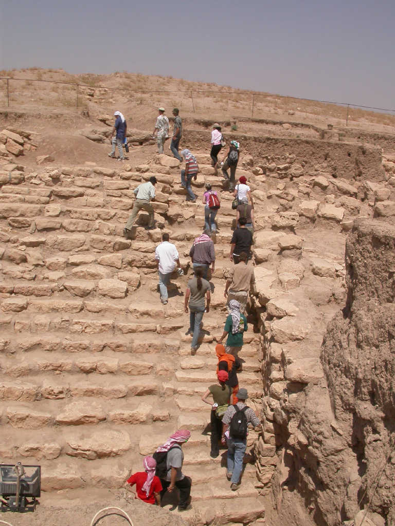 The Temple Terrace was subject to damage and was both repaired and expanded in size. However, our aim is to give visitors an insight into the ancient perception of space, and to recreate the feeling of standing in front of the 3 meters high revetment wall or of being invited to climb the steps to the summit, where the Temple stood. This was achieved by opening up the view from the south, allowing visitors to approach the monumental staircase from the plaza.