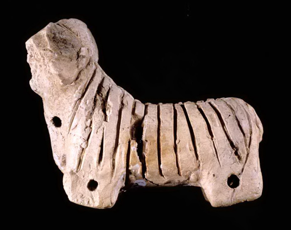 Figurine of a sheep with holes for wheels
