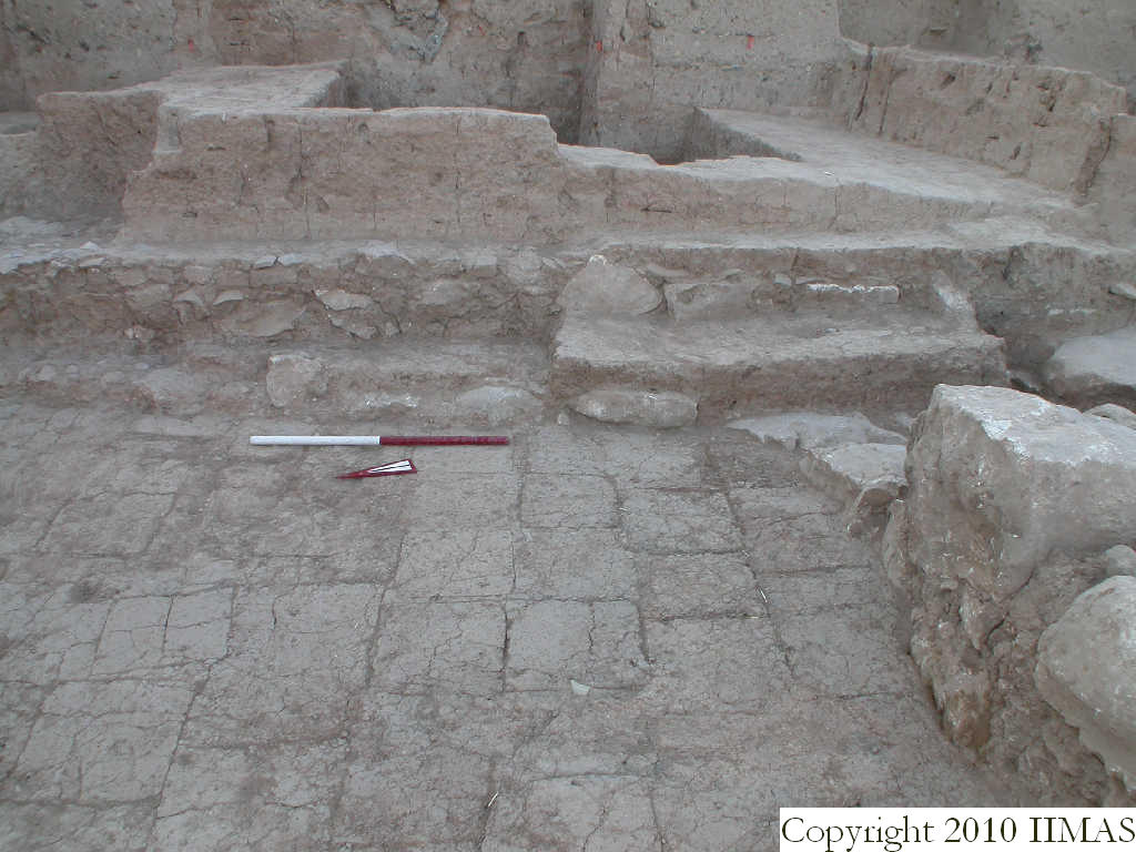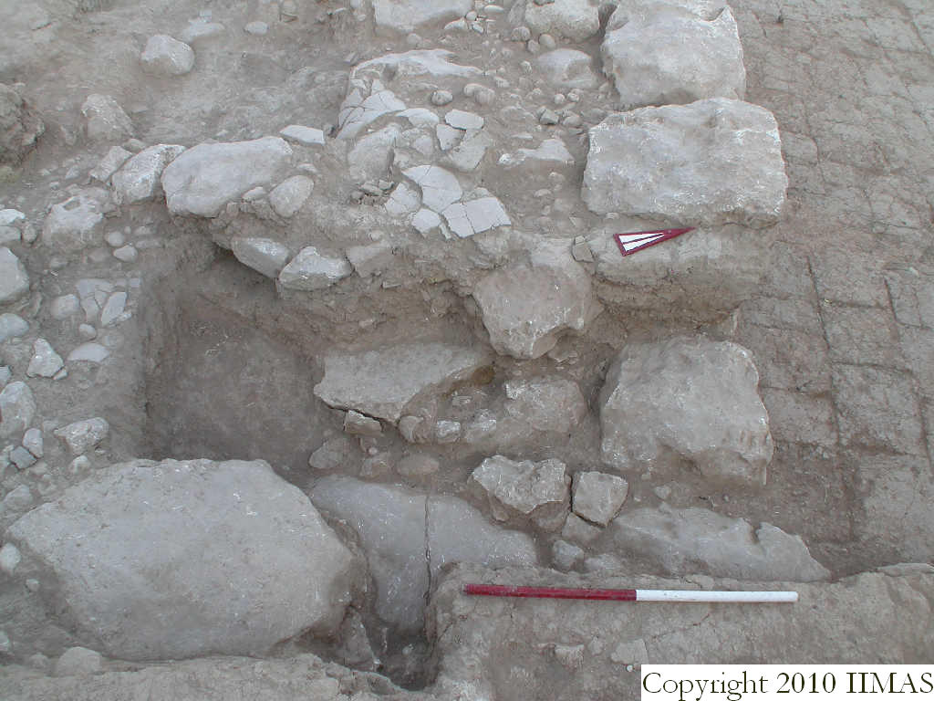 Text description of view | 2003-08-27 | jw | bitumen painted sherd out of context next to wall [Input: ZH330jW.j] |
