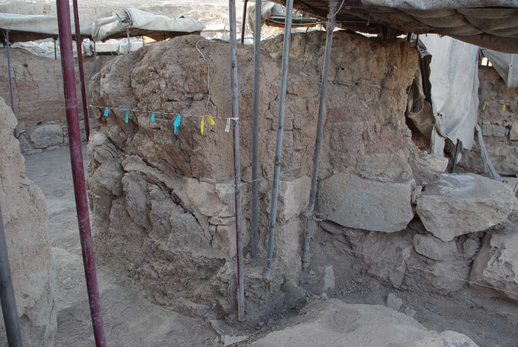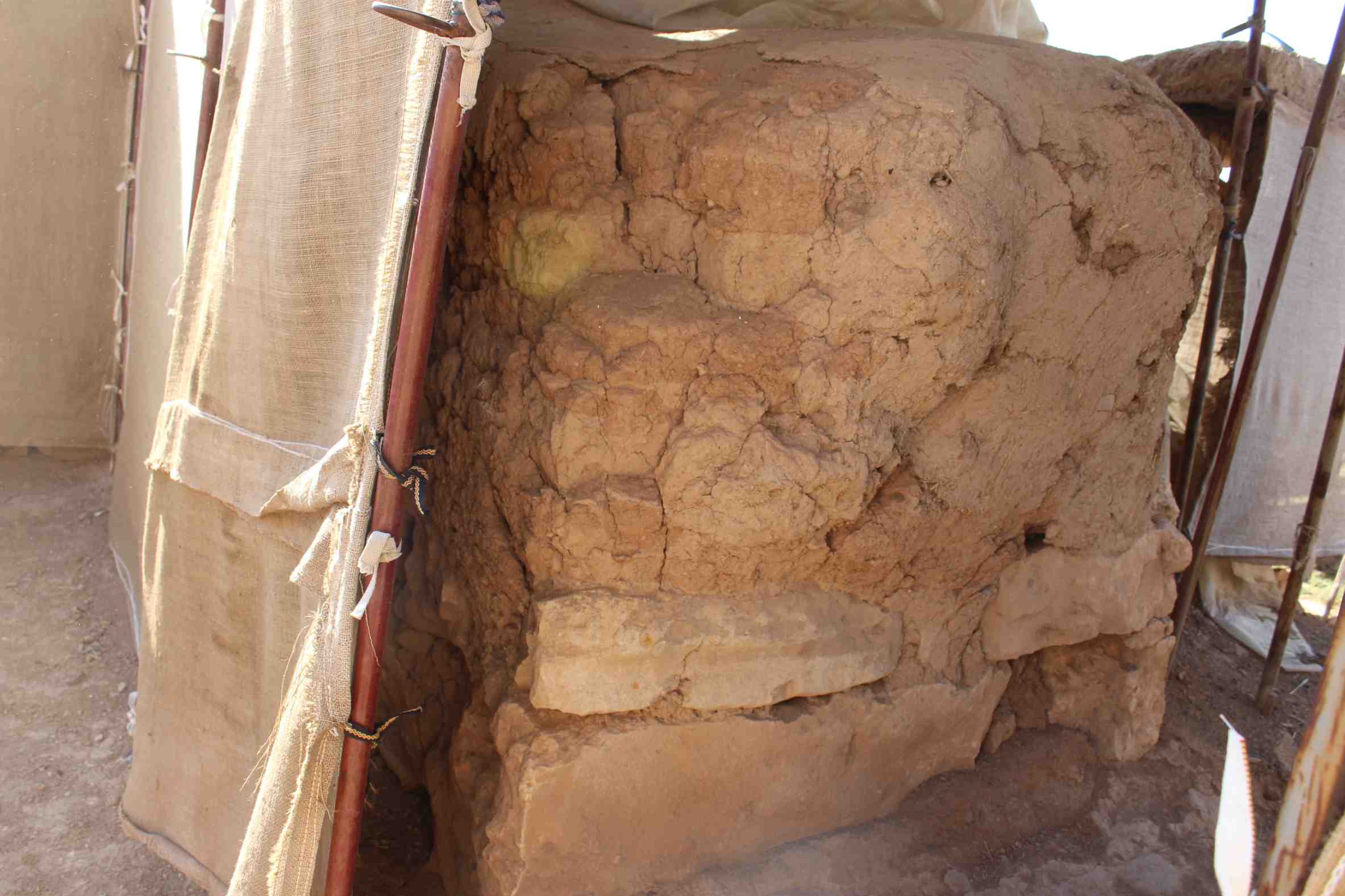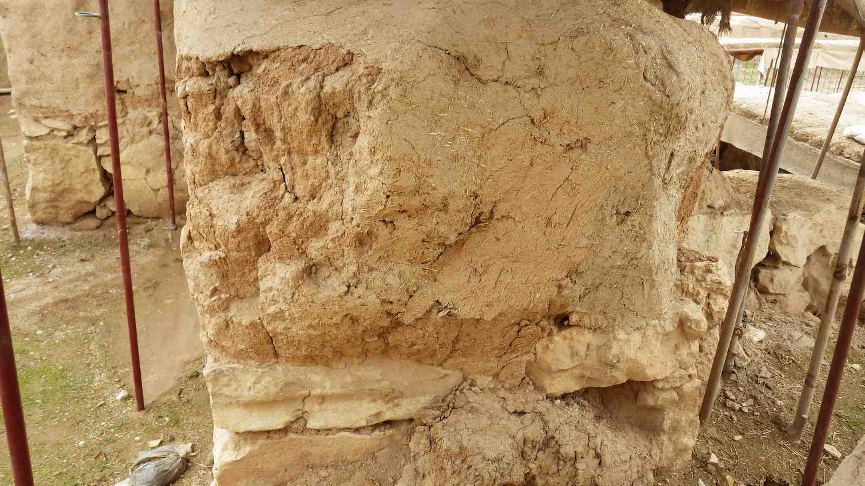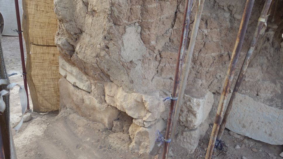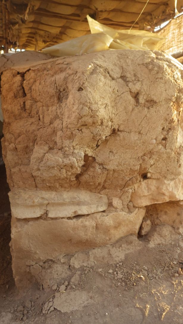The wall surface subjected to erosion in 2016 and 2017, eventually leading to its collapse. It is important to note that the collapsed section does not belong to the original structure but to a reconstructed part added later after the palace’s primary function was abandoned. In contrast, the original wall appears to be in good condition, with no changes compared to last year.