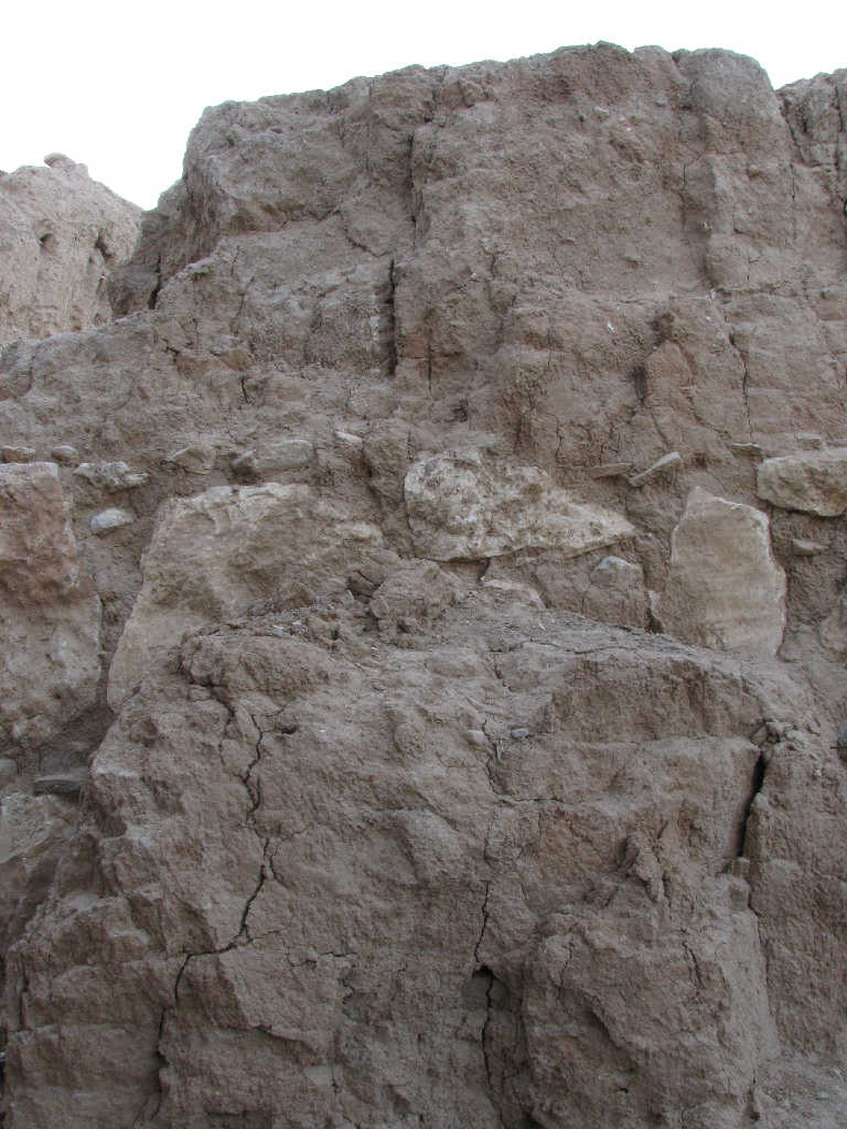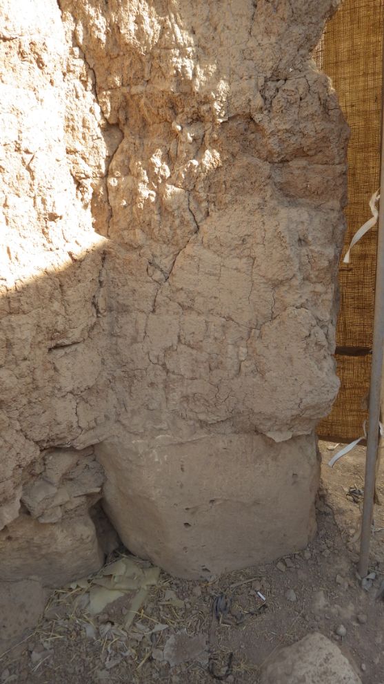 The wall seems fragile but no loss in mud bricks and the stones are in good shape, some cracks appeared.