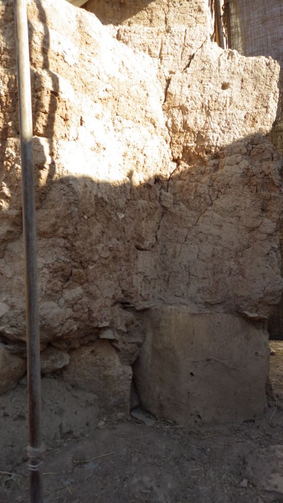 The wall seems fragile but no loss in mud bricks and the stones are in good shape, some cracks have appeared. No changes in comparison with last year.