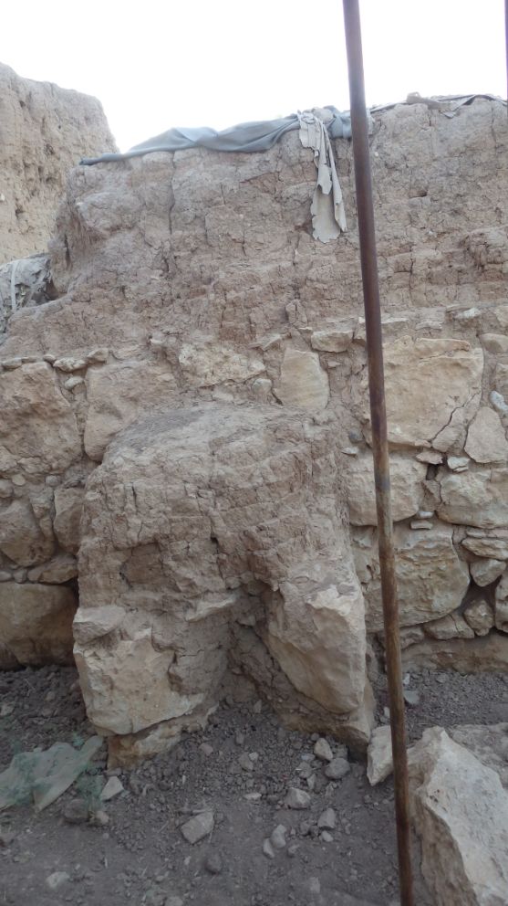 The mud-brick section has subjected to a slight erosion on the left side, with no significant changes observed compared to the previous year. The wall is covered with plastic sheet (nylon) to protect it from weather conditions during the winter season.