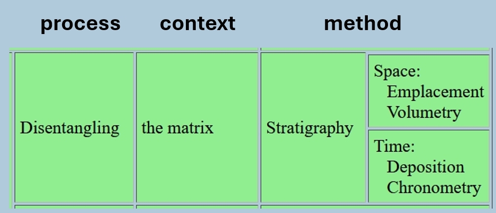 In their original state, data are disengaged from the soil which acts as the amorpohus matrix in which the “things” are found. They came to rest there as the result of multiple cultural and natural forces, and often over very long periods of time.