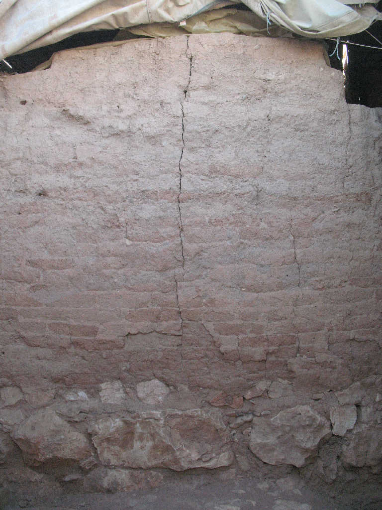 No increase in the length or width of the cracks. Face of the wall is in good condition. No losses in the smaller stones.
