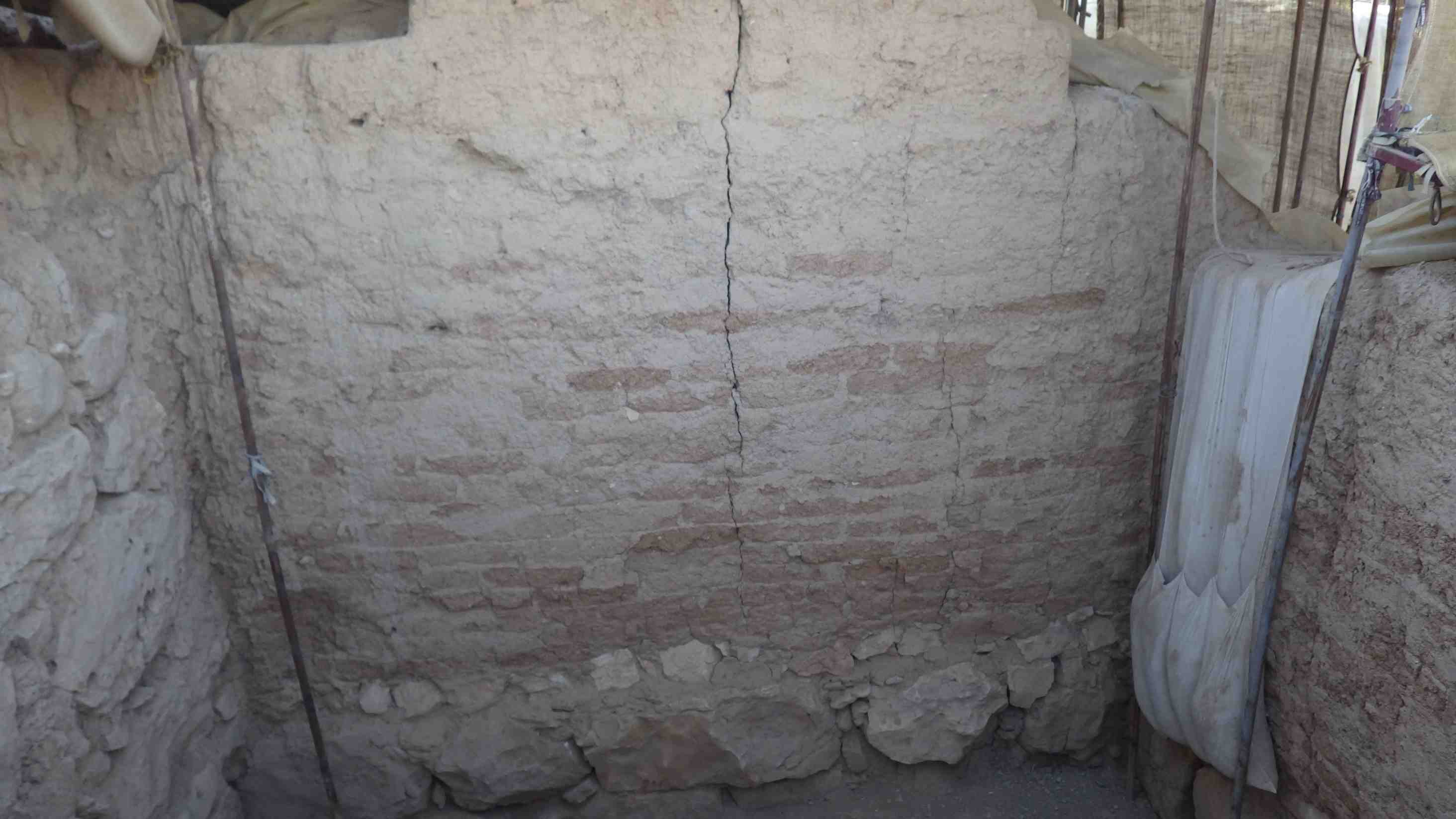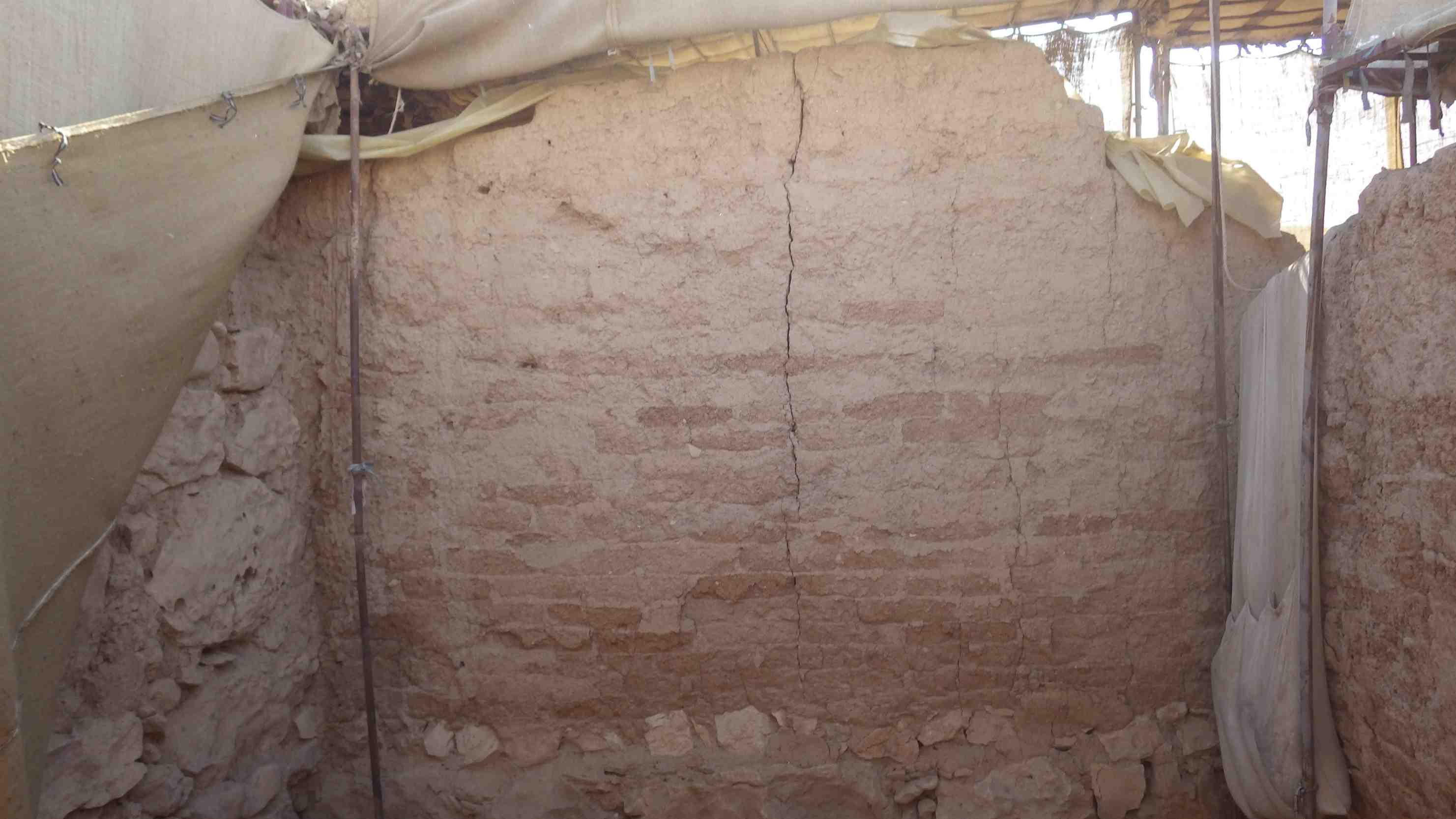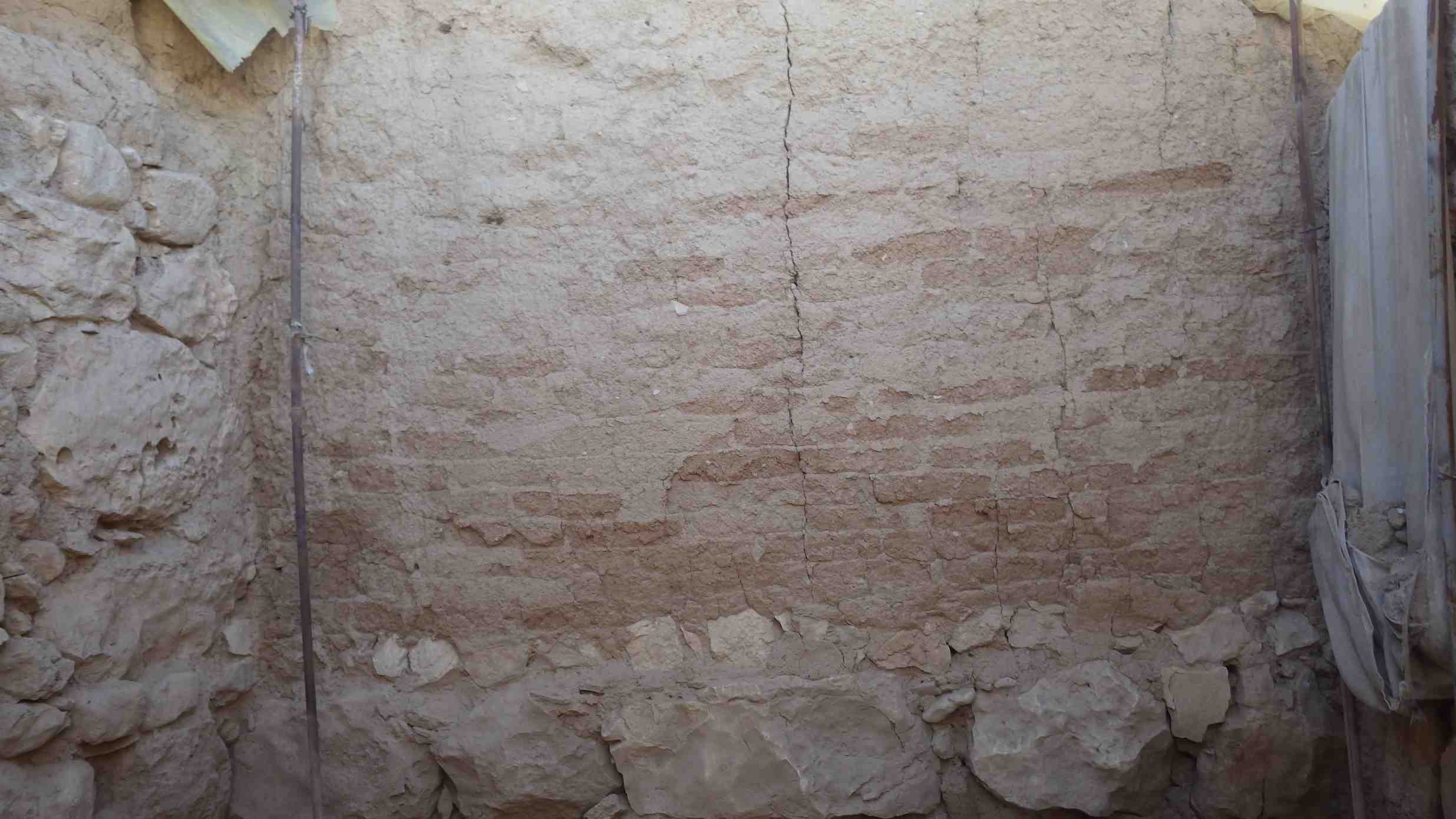 No changes in the wall. No increase in the length or width of the cracks. Face of the wall is in a good condition. No losses in the smaller stones.