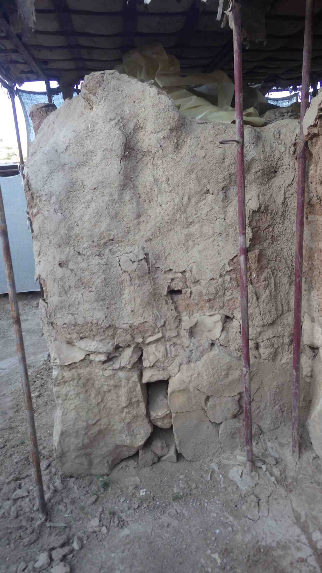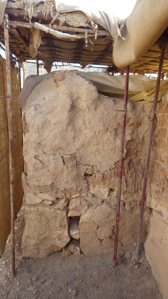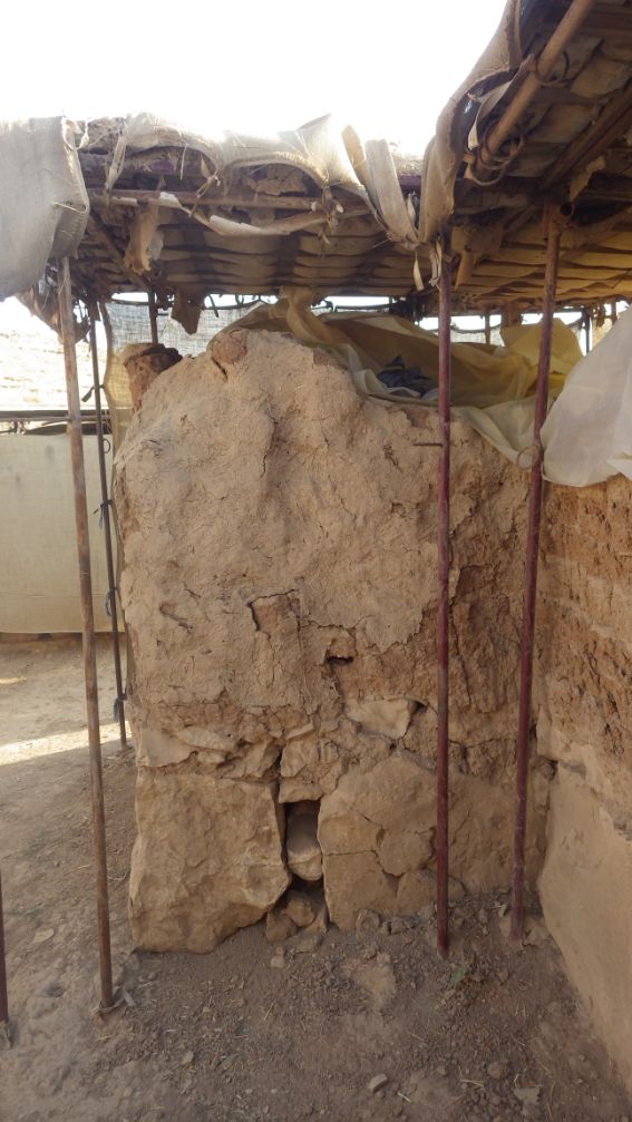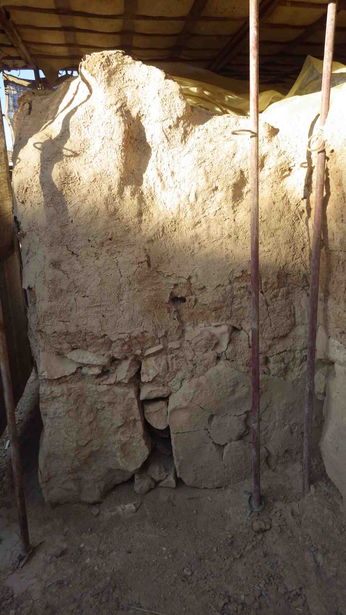 Wall in good condition. No losses in the stones or the mud bricks. Mud plaster has slightly peeled from the right side of the wall.
