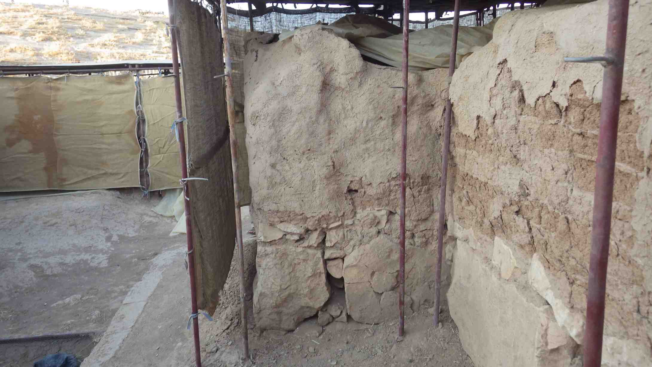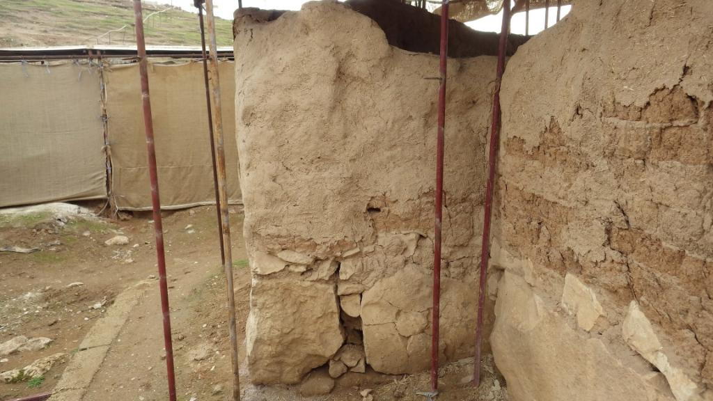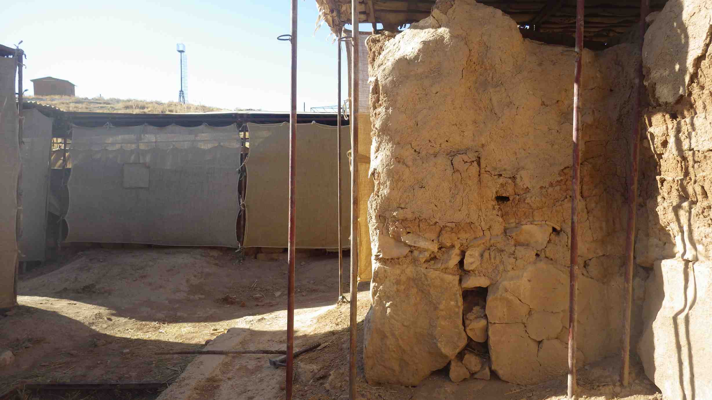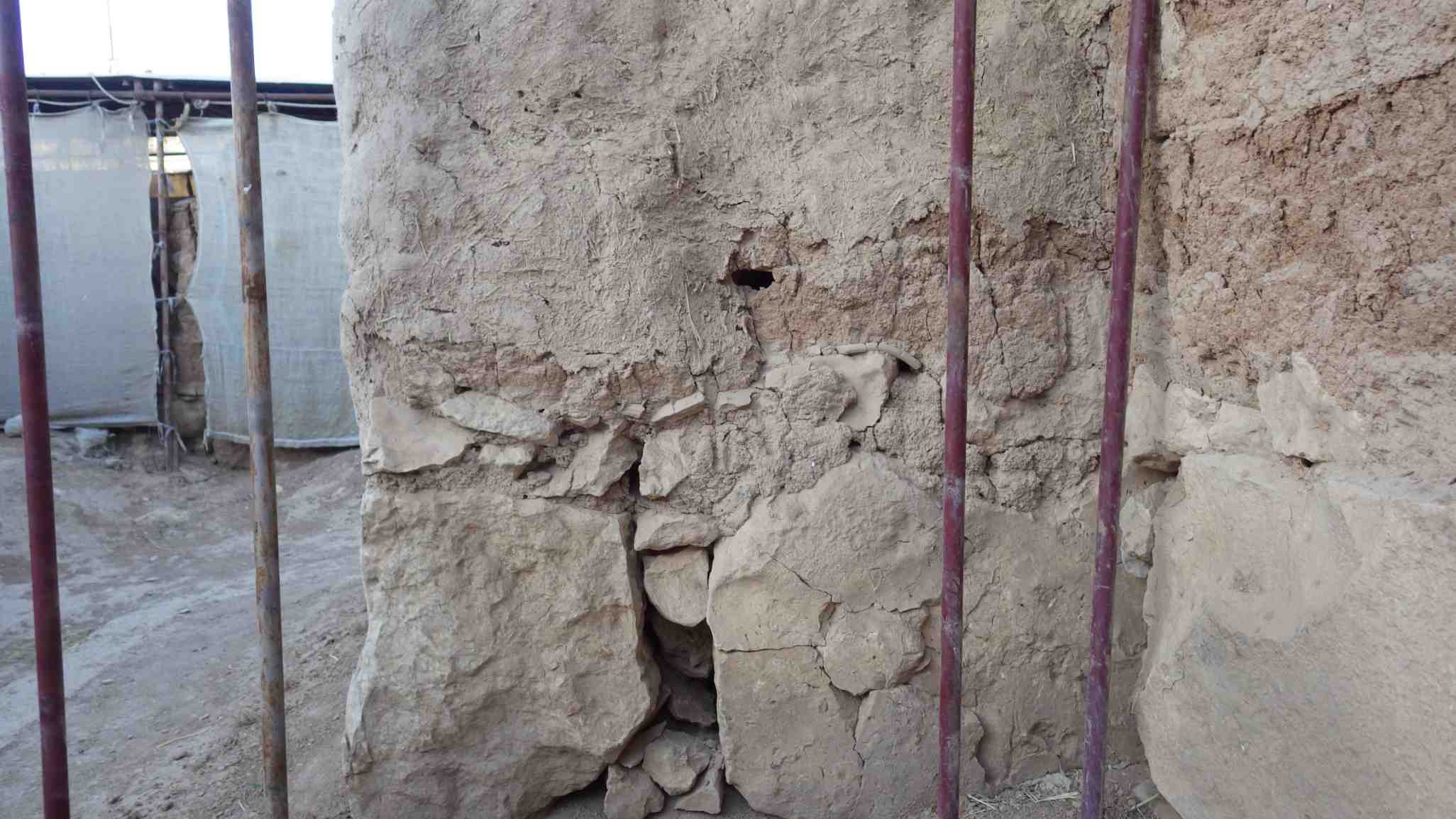 Wall in good condition. No losses in the stones or the mud bricks. Mud plaster has slightly peeled from the right side of the wall.