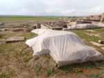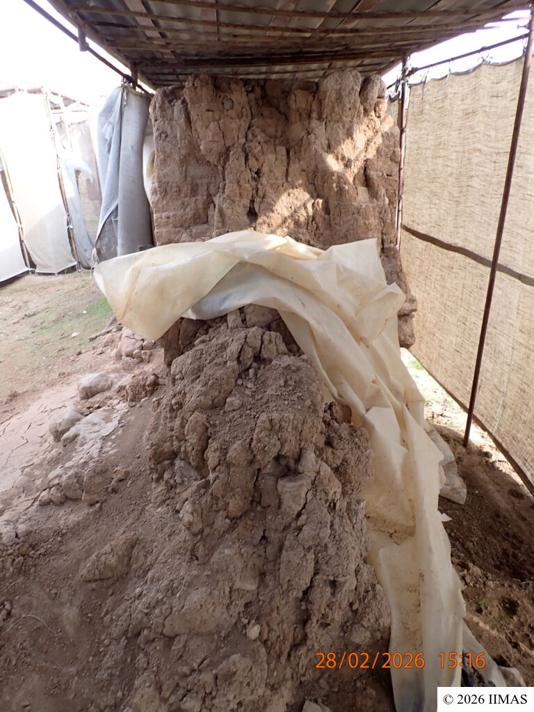 - The burlap covering of 9 walls is completely torn, and as a result, parts of some walls have deteriorated in the mud-brick, such as walls F1-4, C1-5 and C8-4.