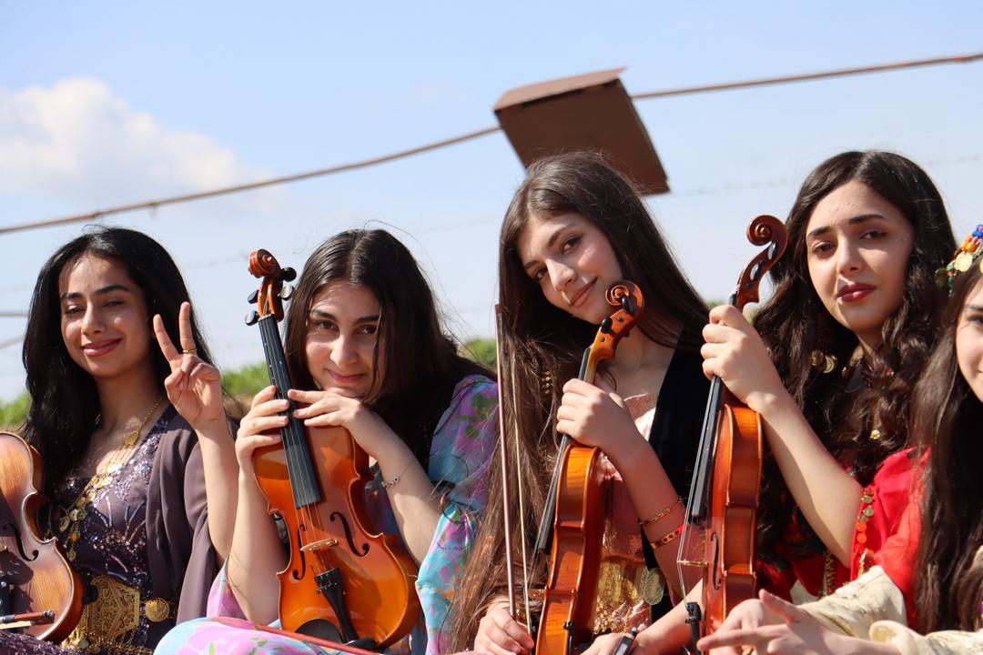 A number of young musicians from Classic Music School in Qamishli participated in a live performance inside the archaeological site of Tell Mozan, presenting pieces inspired by local folk music. They appeared in traditional dress; the girls wore Kras û Xeftan, while the boys wore Shal û Shepik, using instruments such as the Violin and the Def see video. In that moment, it felt as though the past was being revived; the site was no longer merely a place to visit and observe its architectural remains, but rather a space to reawaken music in which its ancient inhabitants were once skilled thousands of years ago, later spreading it to distant places such as Ugarit.